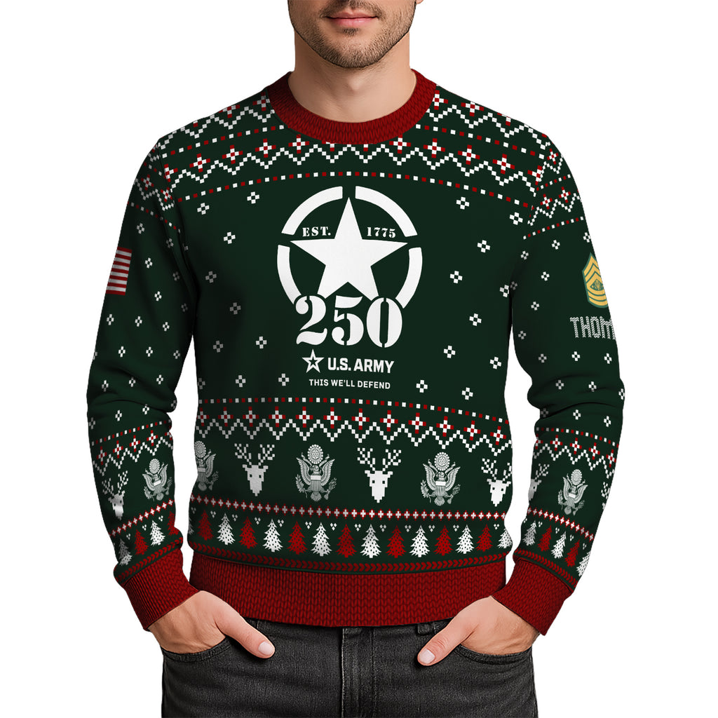 Custom Ranks And Text US Army Ugly Christmas Sweater for Women Men JUST01