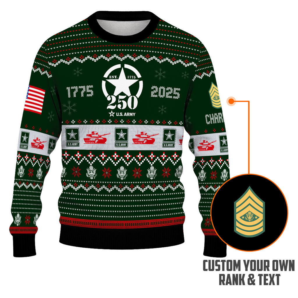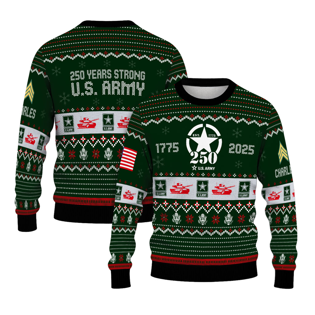 Custom Ranks And Text US Army Ugly Christmas Sweater for Women Men JUST03