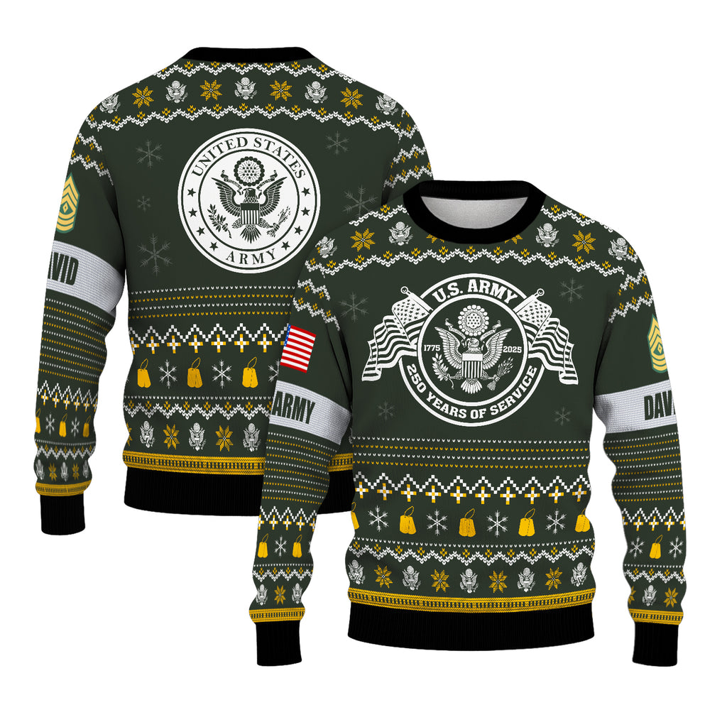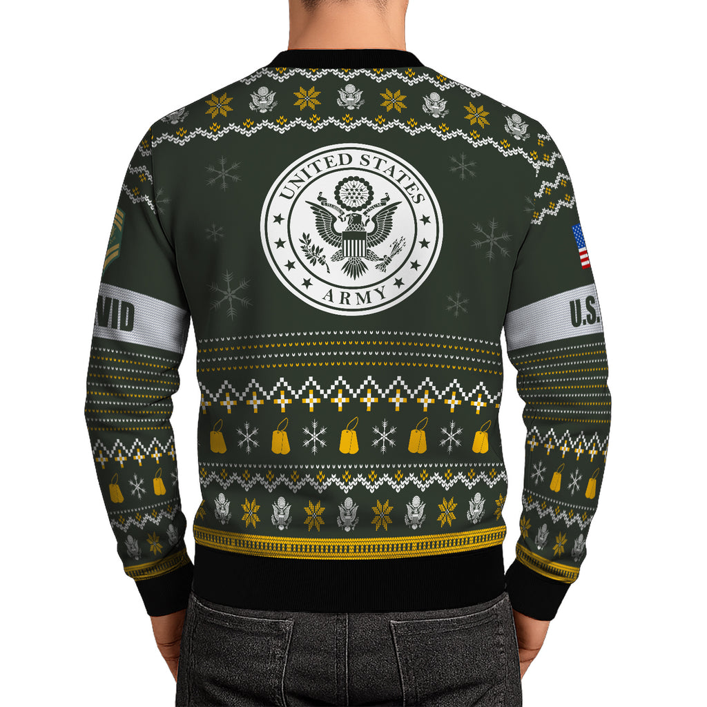 Custom Ranks And Text US Army Ugly Christmas Sweater for Women Men JUST04