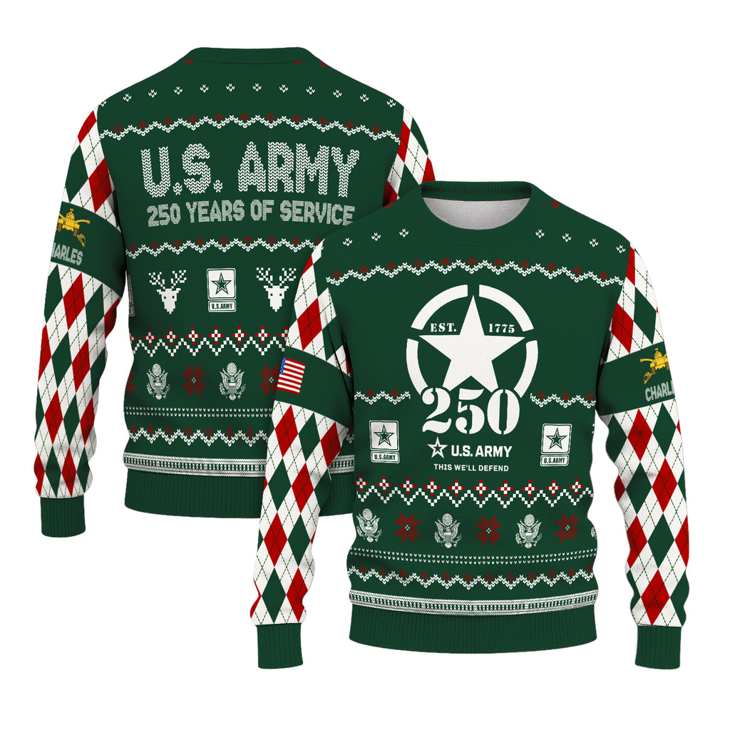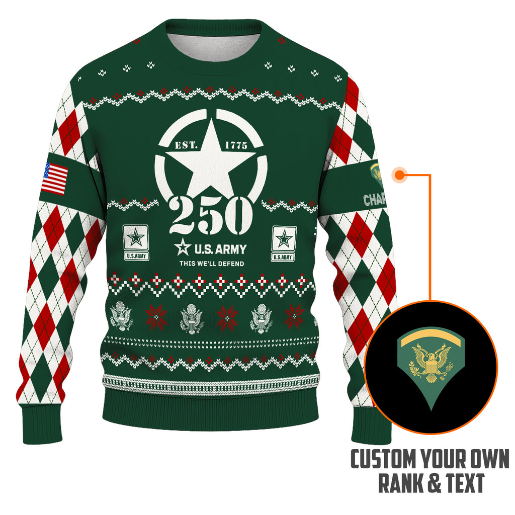 Custom Ranks And Text US Army Ugly Christmas Sweater for Women Men JUST05