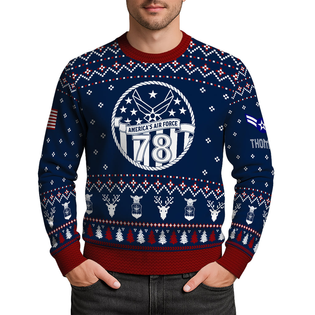 Custom Ranks And Text US Air Force Ugly Christmas Sweater for Women Men JUST01