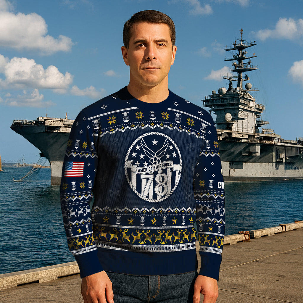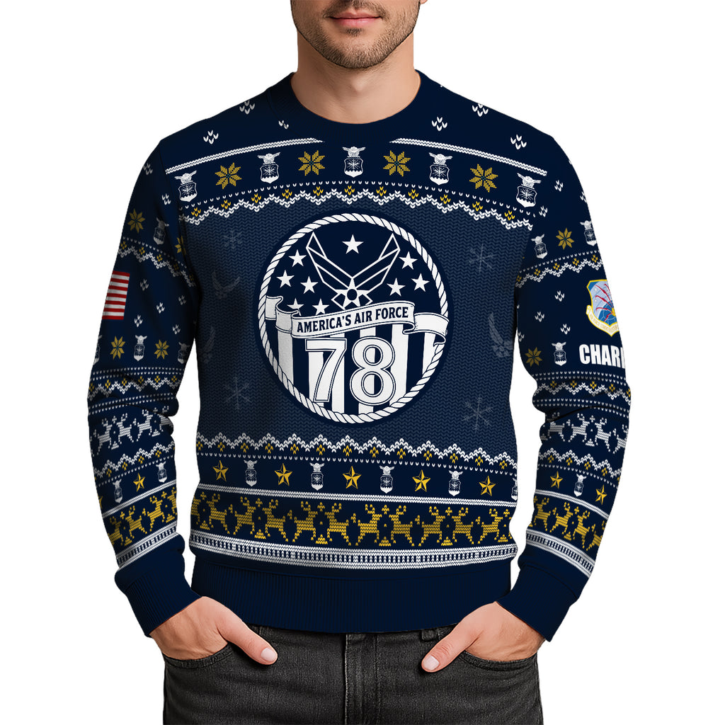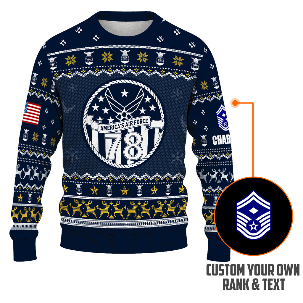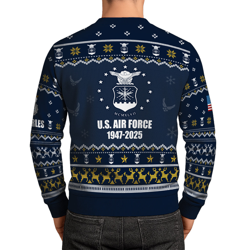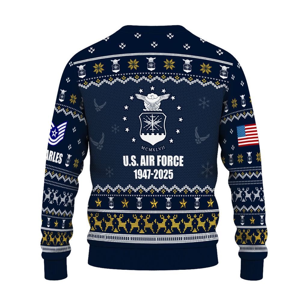 Custom Ranks And Text US Air Force Ugly Christmas Sweater for Women Men JUST02
