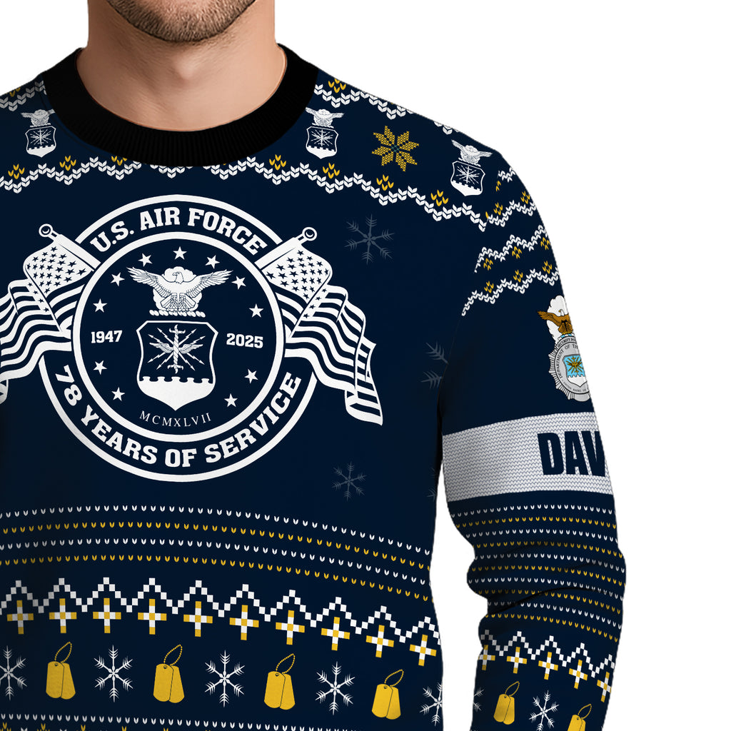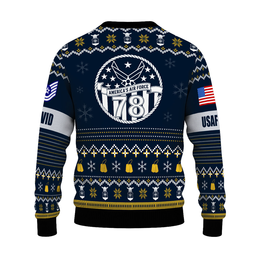 Custom Ranks And Text US Air Force Ugly Christmas Sweater for Women Men JUST04