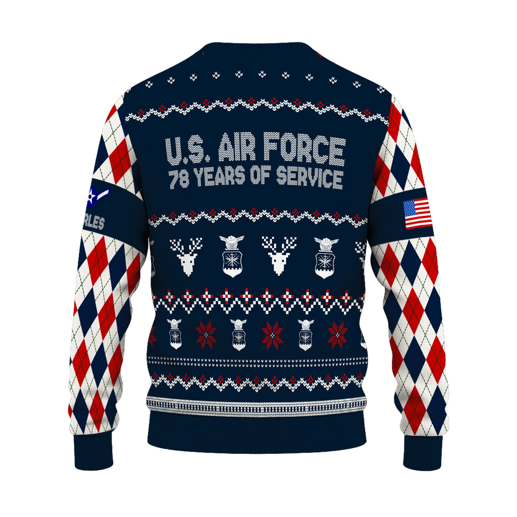 Custom Ranks And Text US Air Force Ugly Christmas Sweater for Women Men JUST05