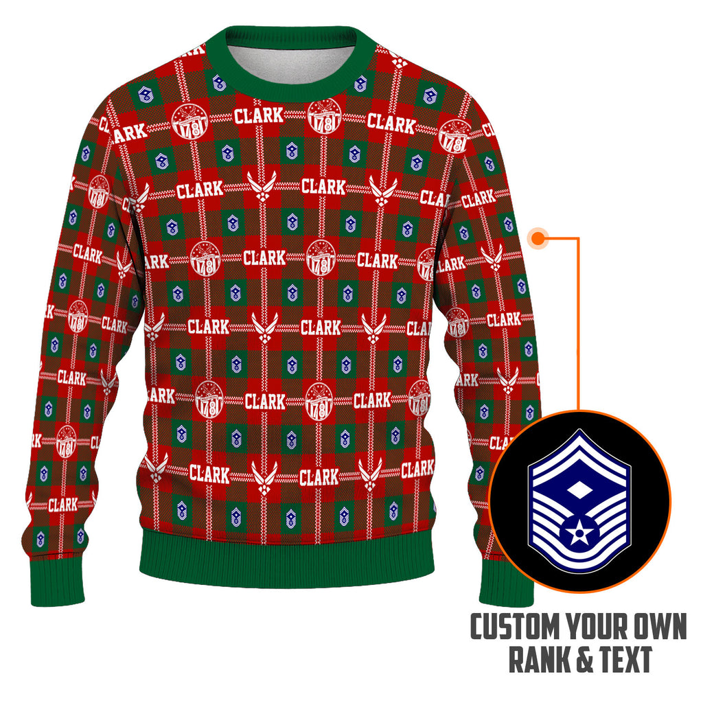 Custom Ranks And Text US Air Force Ugly Christmas Sweater for Women Men KAUST05