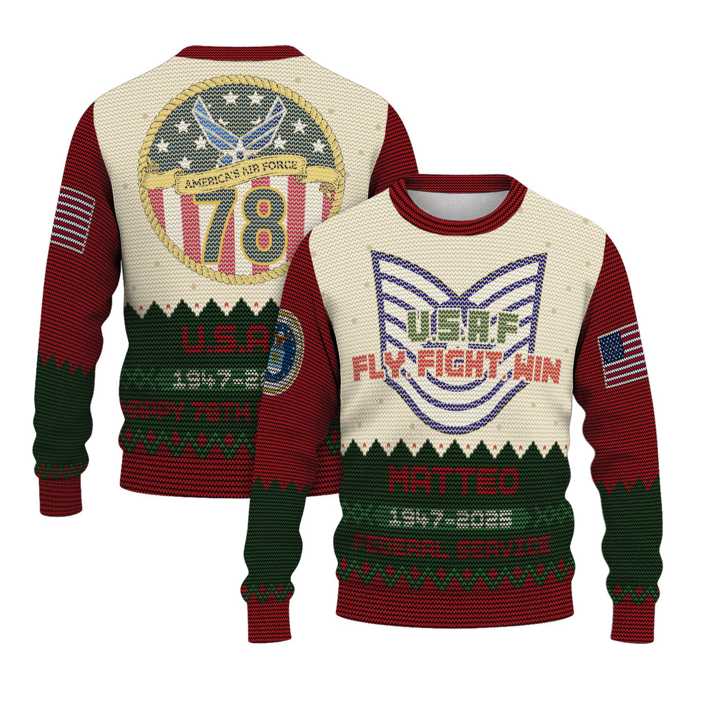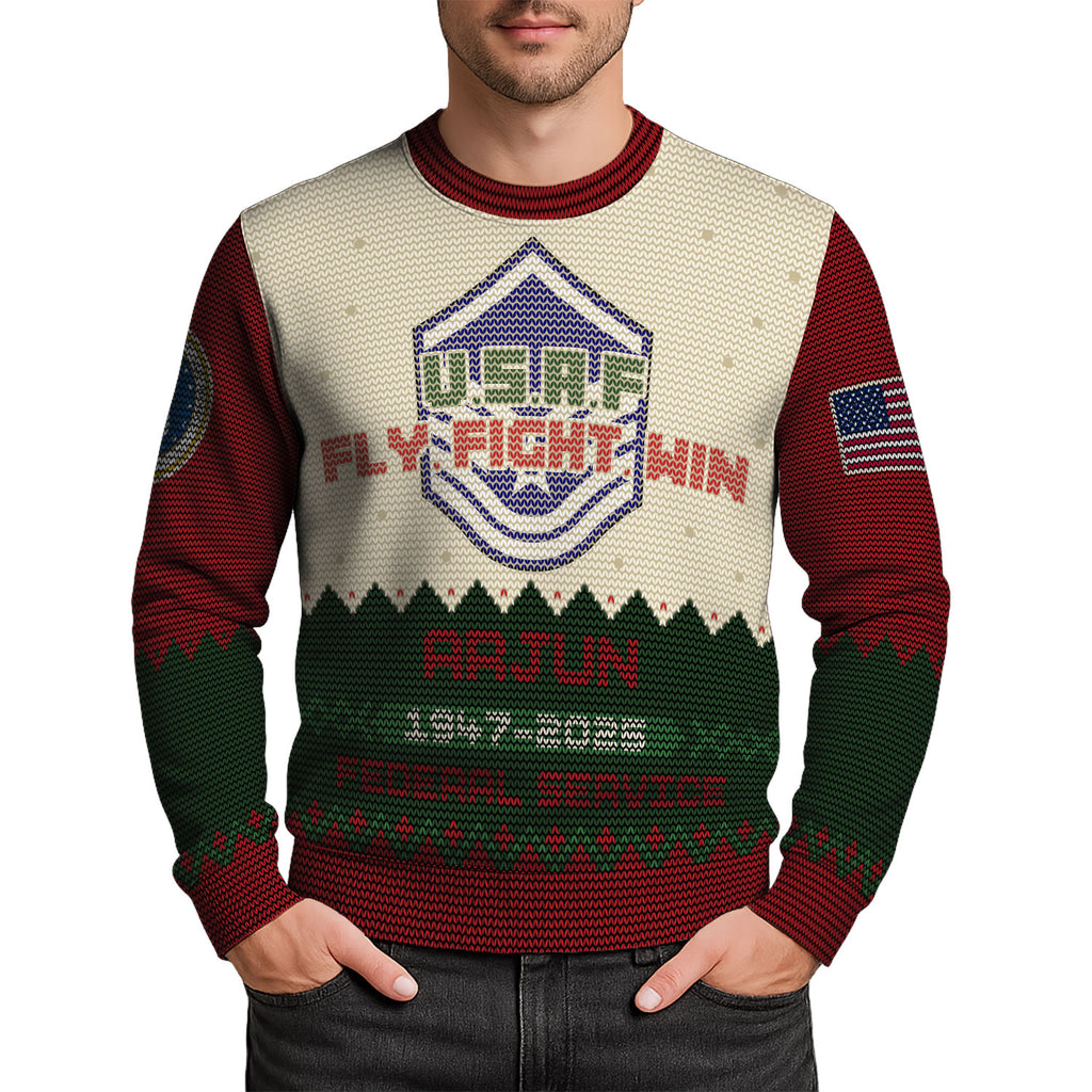 Custom Ranks And Text US Air Force Ugly Christmas Sweater for Women Men KAUST07