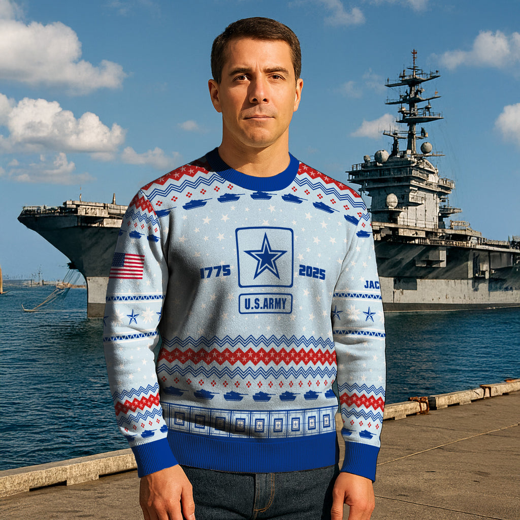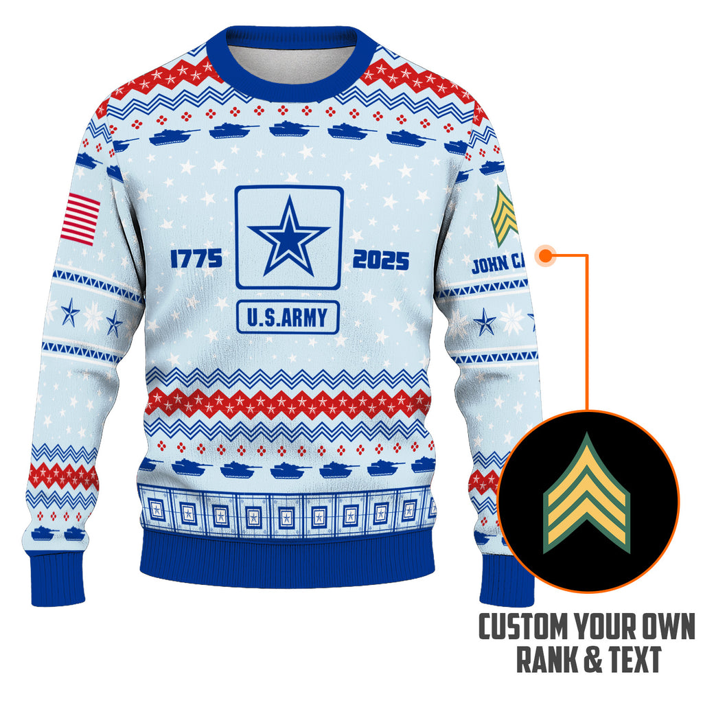 Custom Ranks And Text US Army Ugly Christmas Sweater for Women Men KRUST02