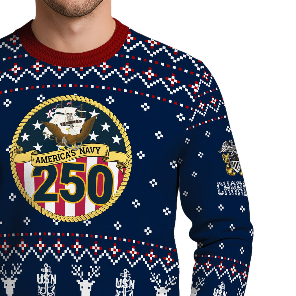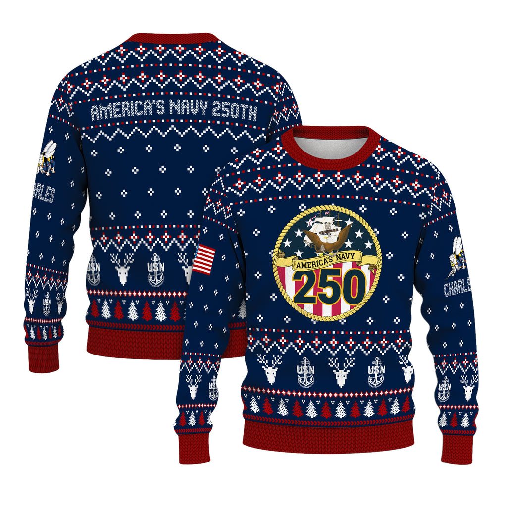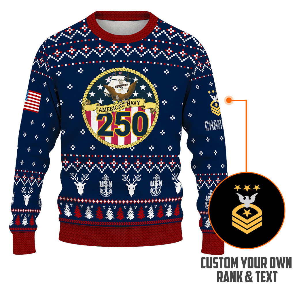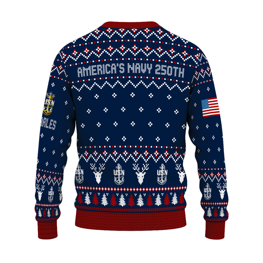 Custom Ranks And Text US Navy Ugly Christmas Sweater for Women Men JUST01