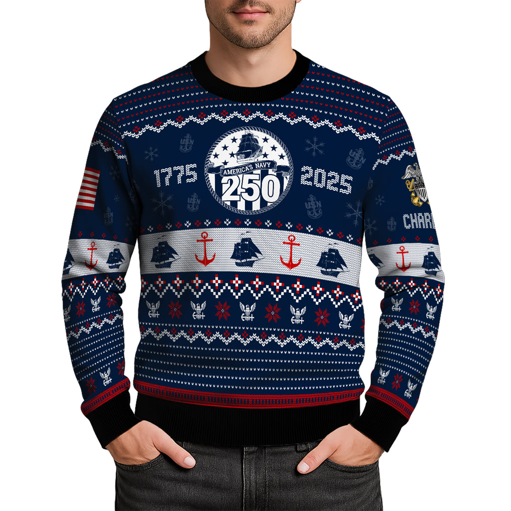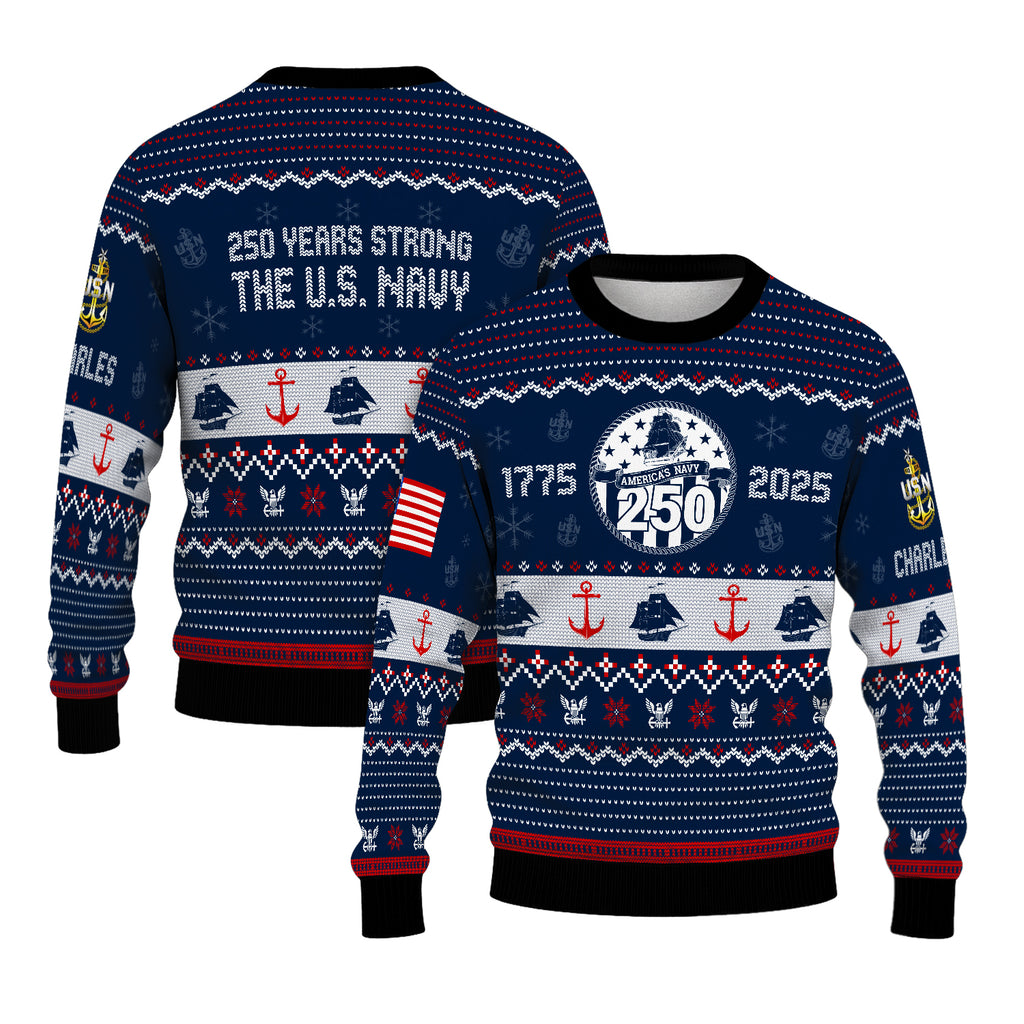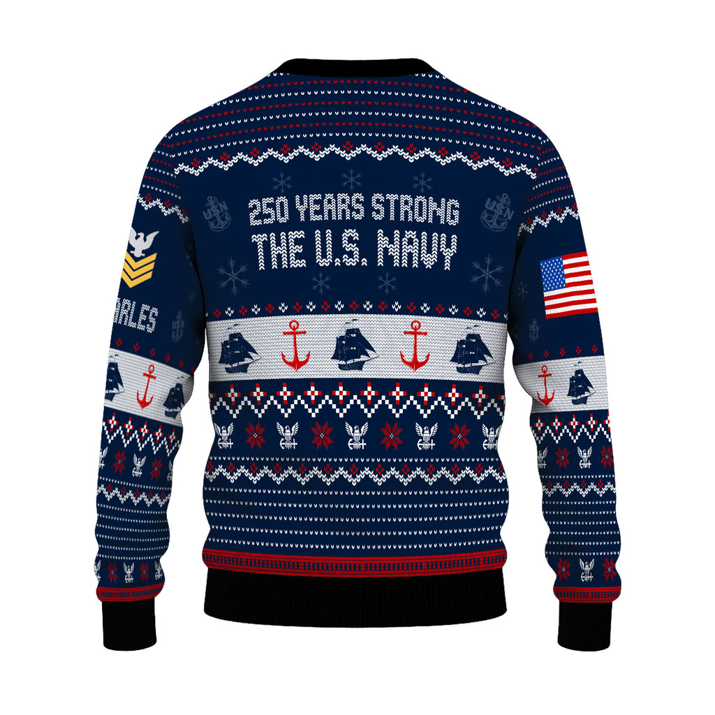 Custom Ranks And Text US Navy Ugly Christmas Sweater for Women Men JUST03