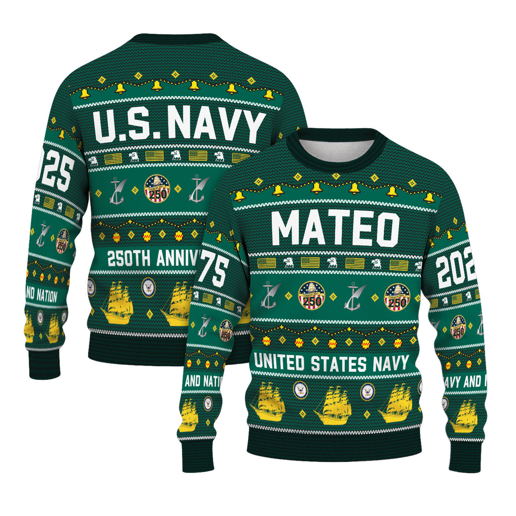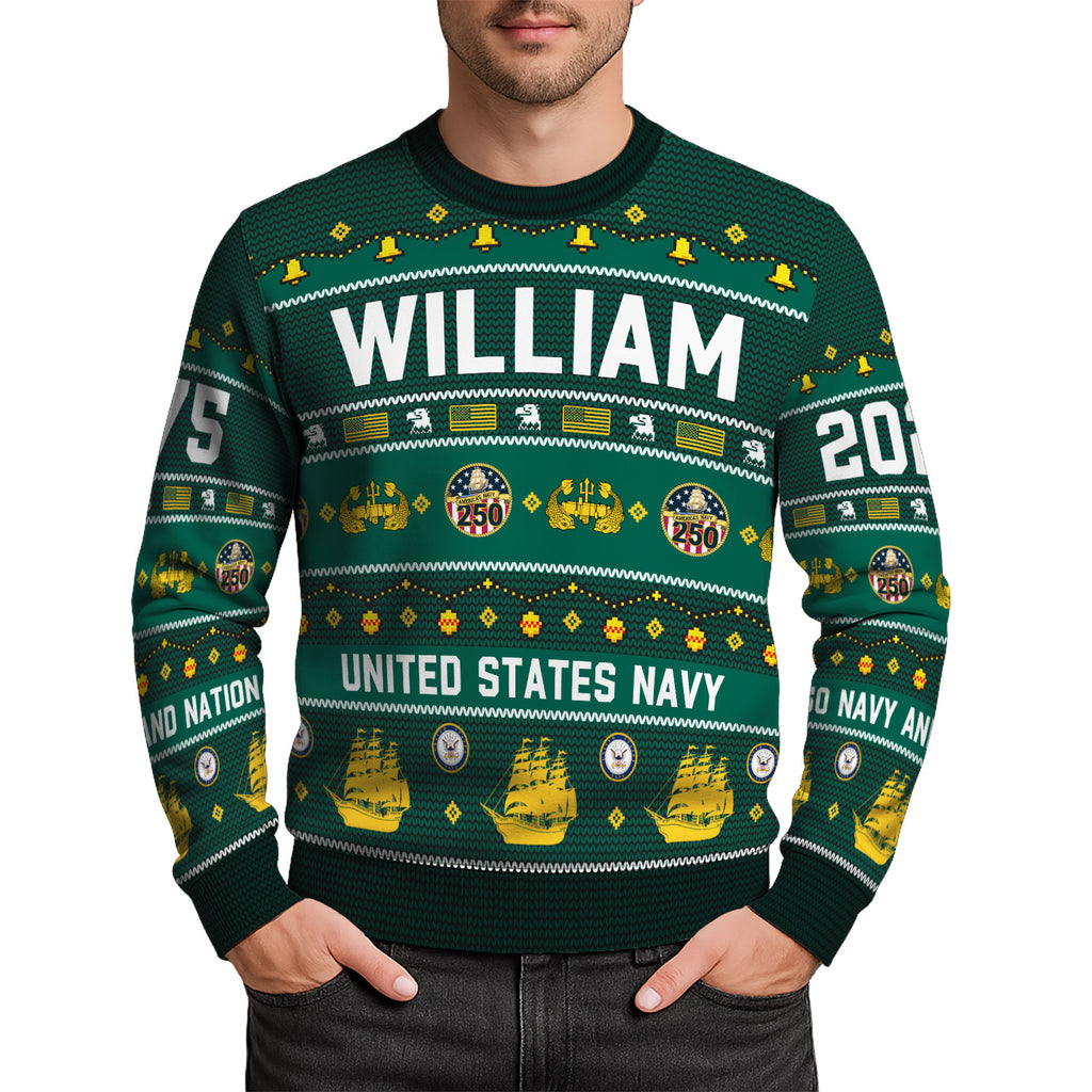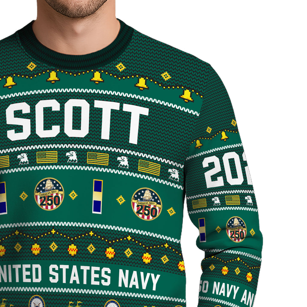 Custom Ranks And Text US Navy Ugly Christmas Sweater for Women Men KAUST03