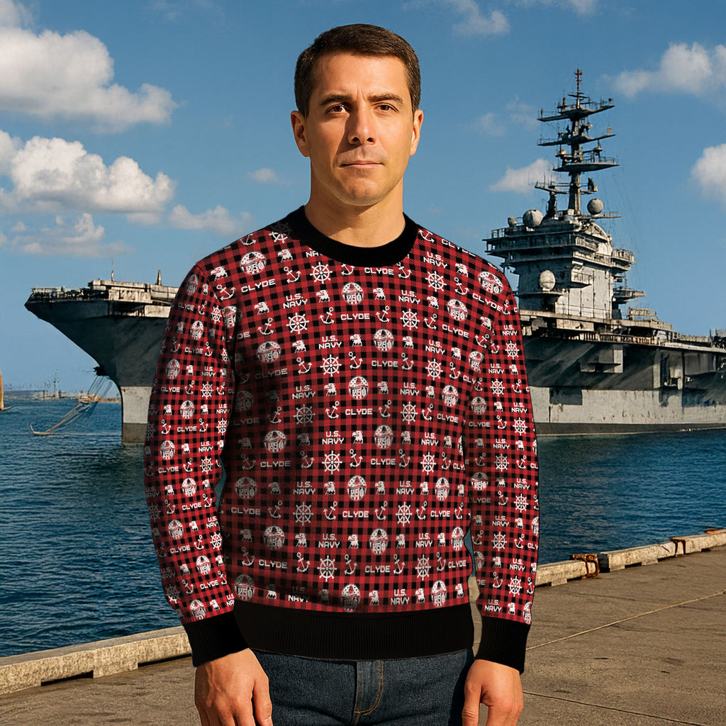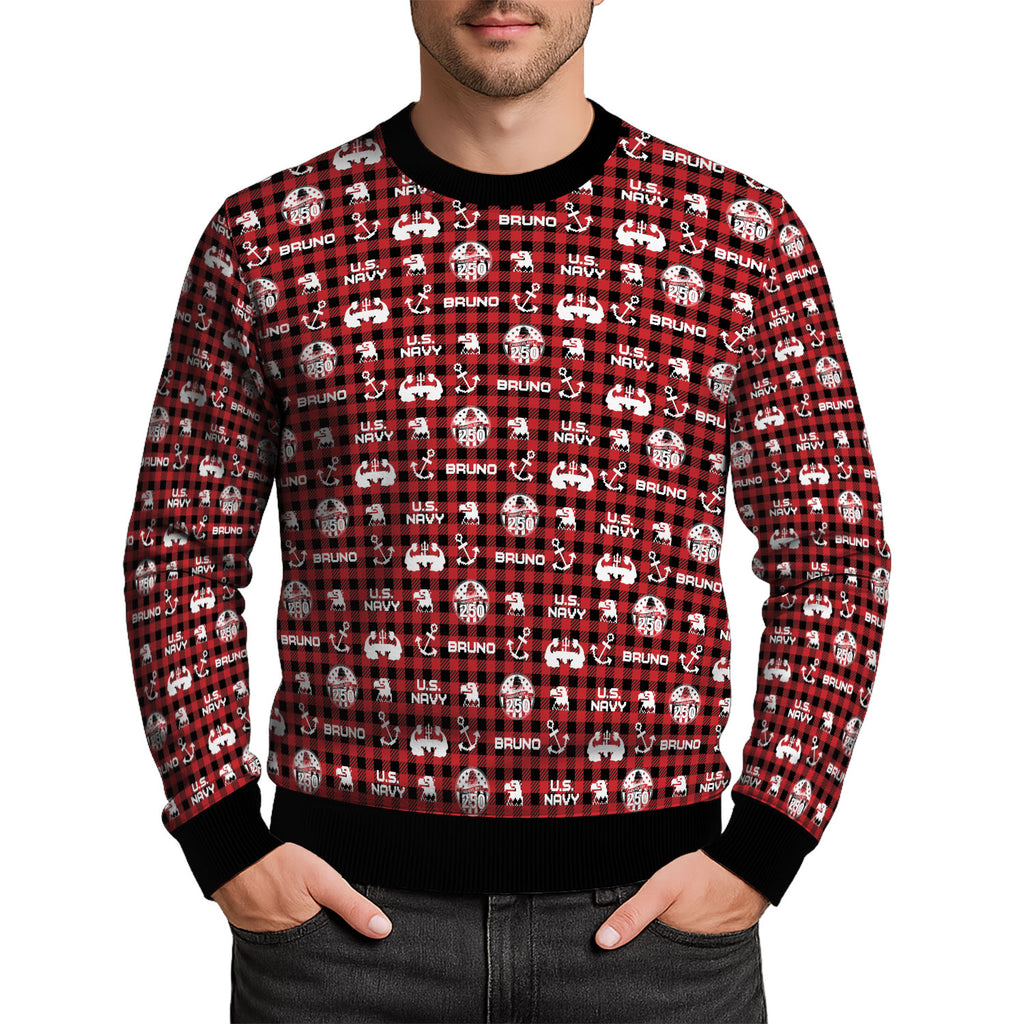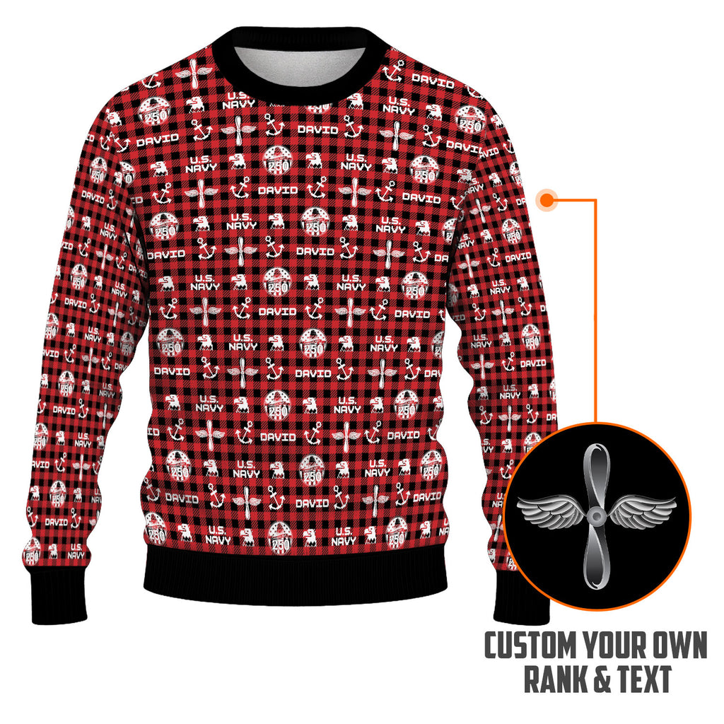 Custom Ranks And Text US Navy Ugly Christmas Sweater for Women Men KAUST04