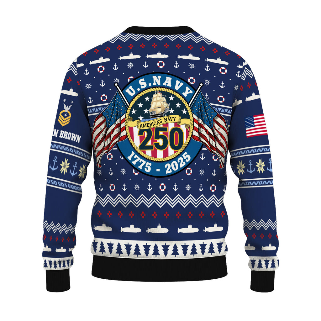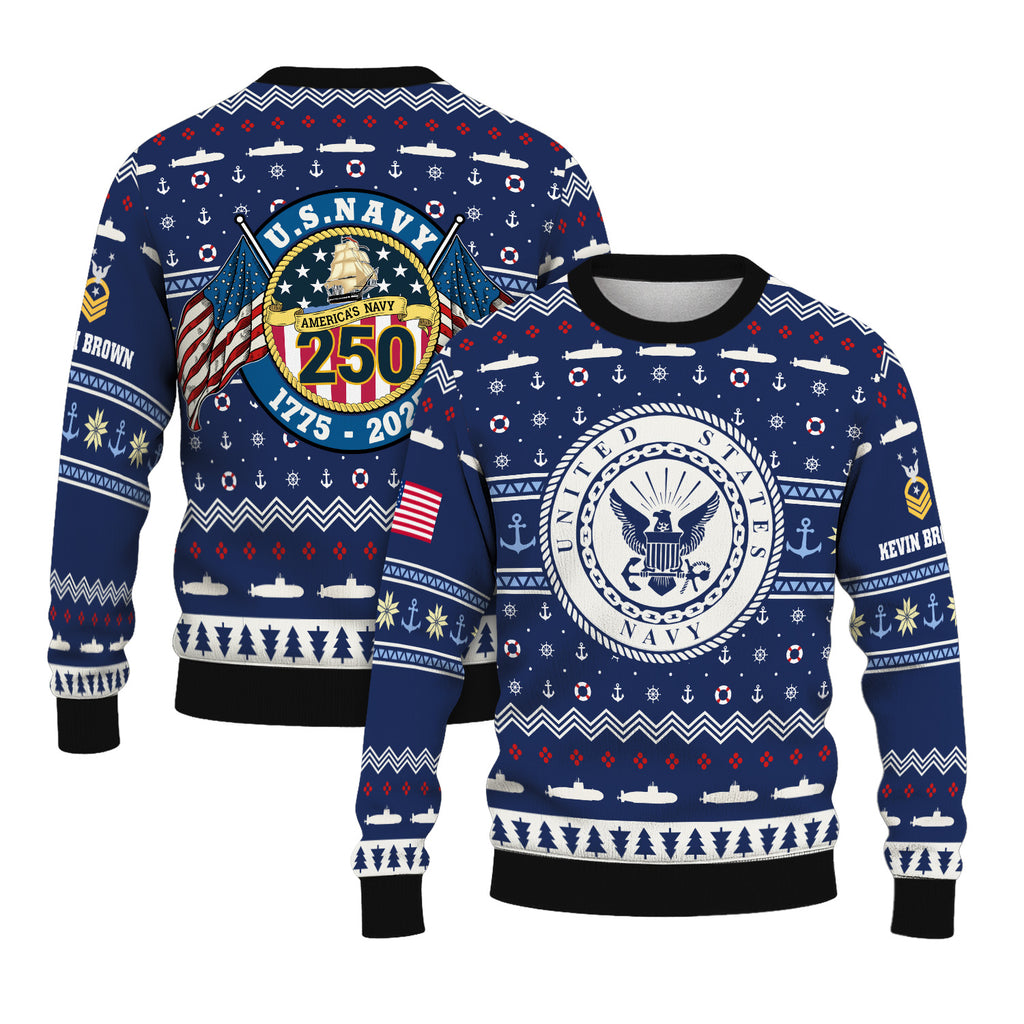 Custom Ranks And Text US Navy Ugly Christmas Sweater for Women Men KRUST01