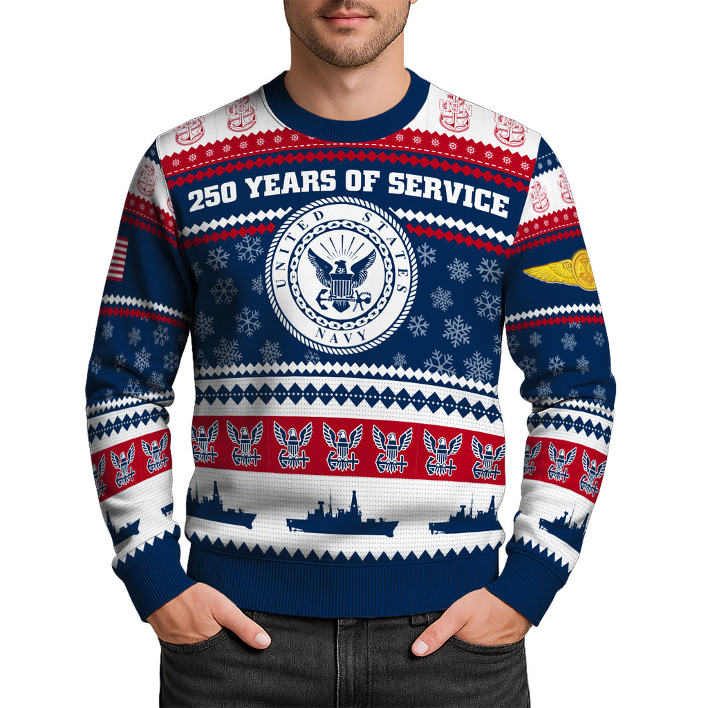 Custom Ranks US Navy Ugly Christmas Sweater for Women Men KRUST03