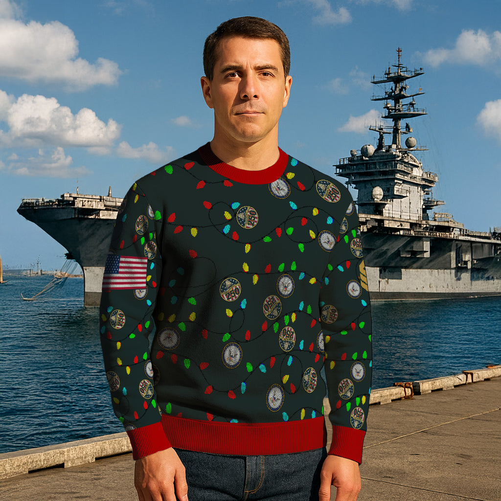 Custom Ranks US Navy Ugly Christmas Sweater for Women Men KRUST07
