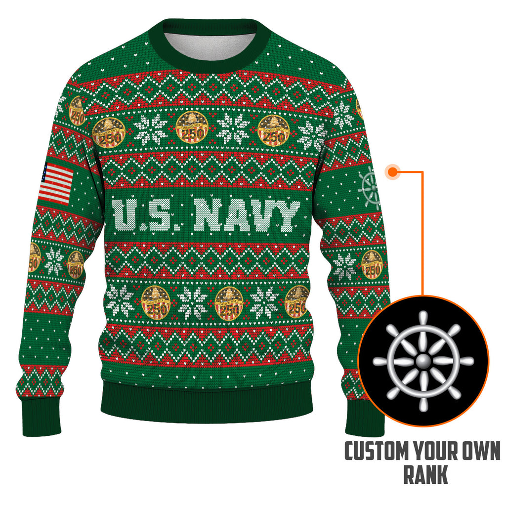 Custom Ranks US Navy Ugly Christmas Sweater for Women Men KRUST09