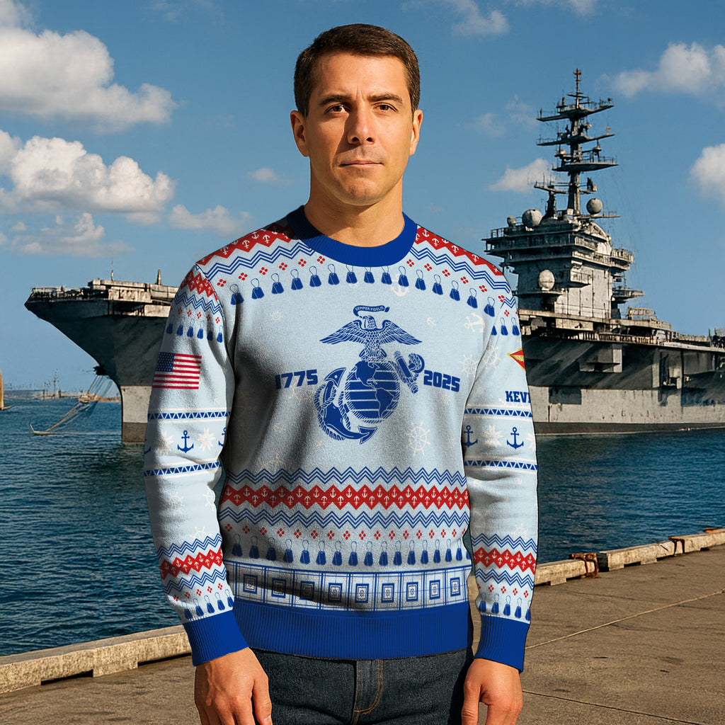 Custom Ranks And Text USMC Ugly Christmas Sweater for Women Men KRUST02
