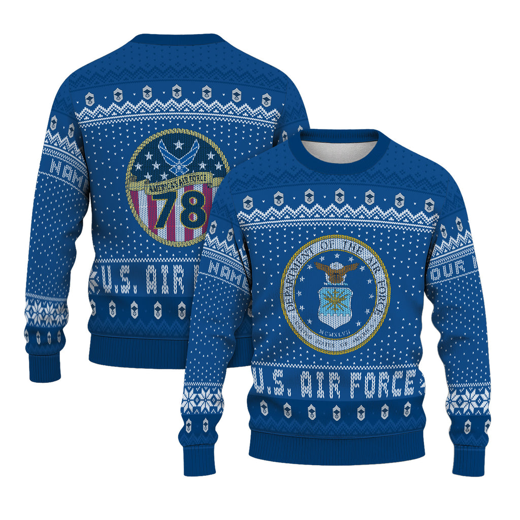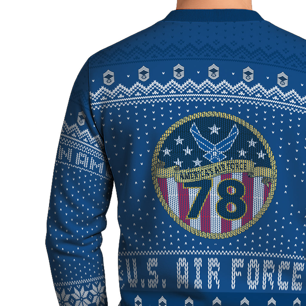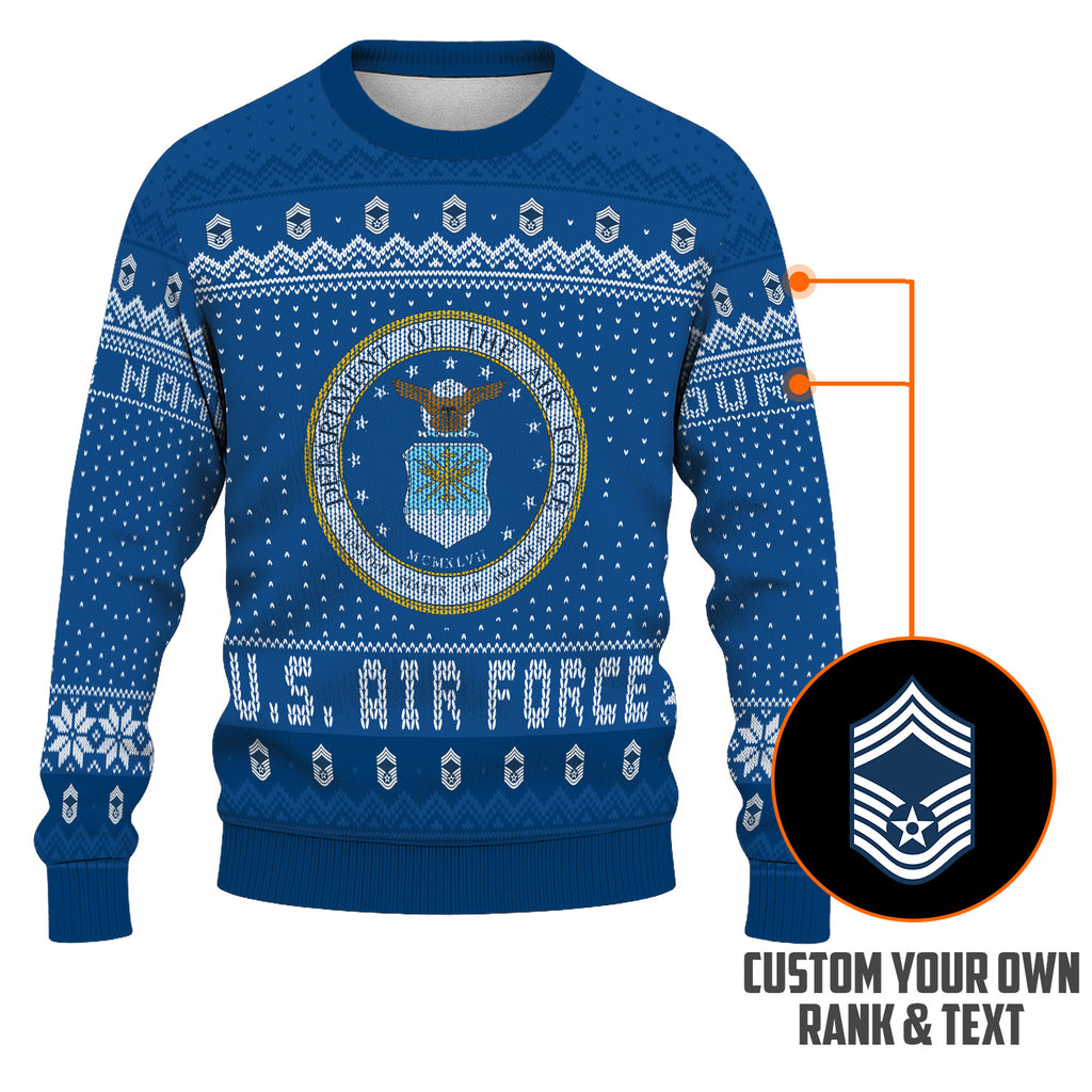 Custom Ranks & Text US Air Force Ugly Christmas Sweater for Women Men TUST04