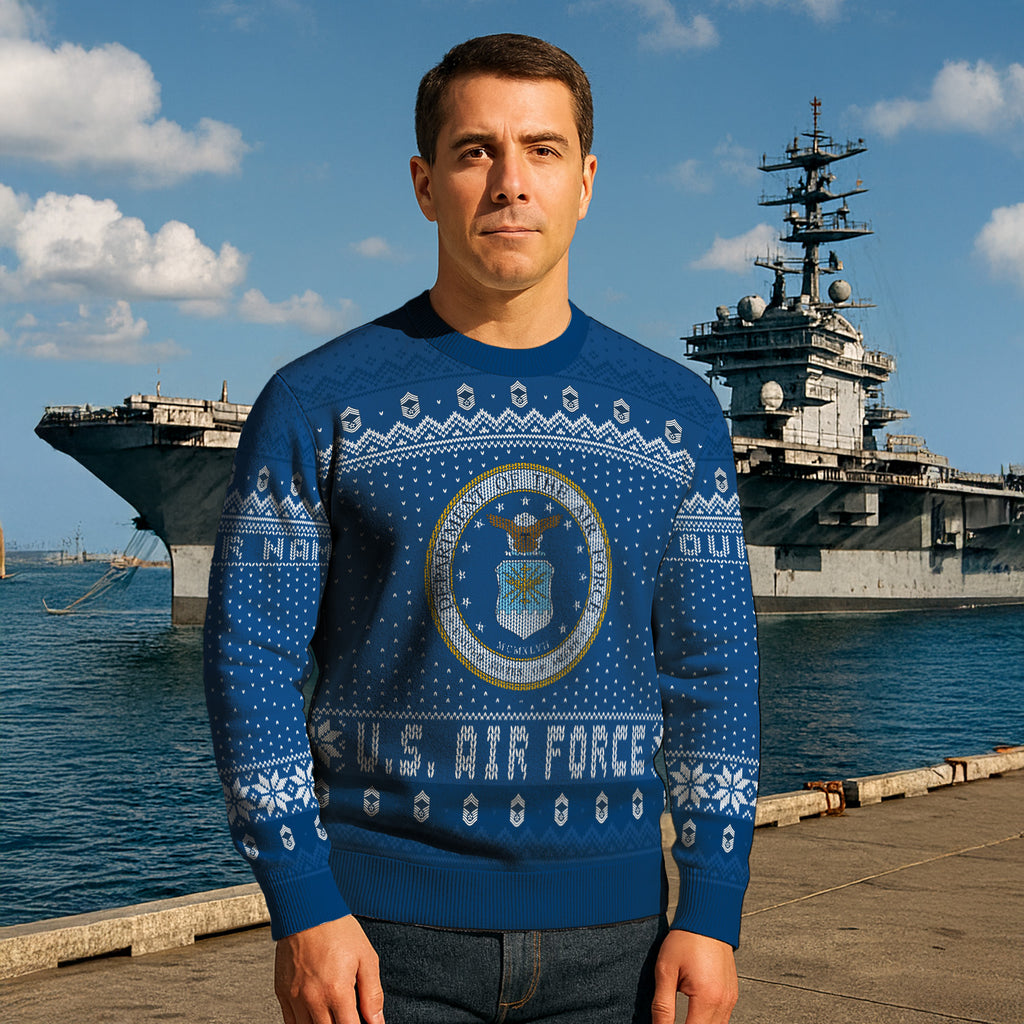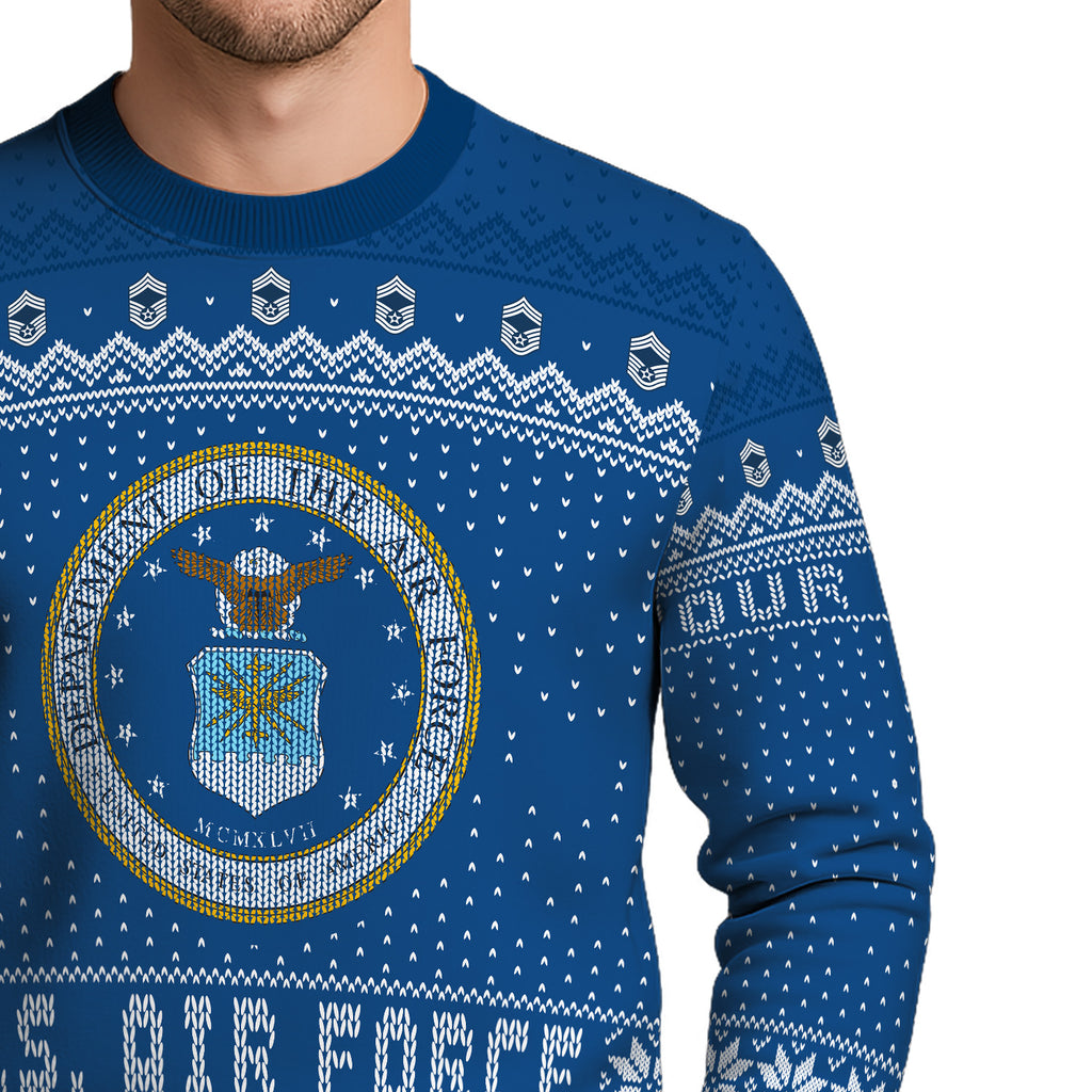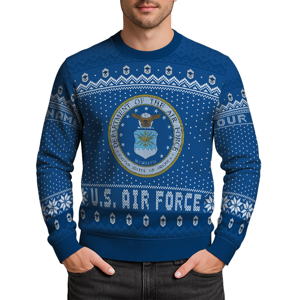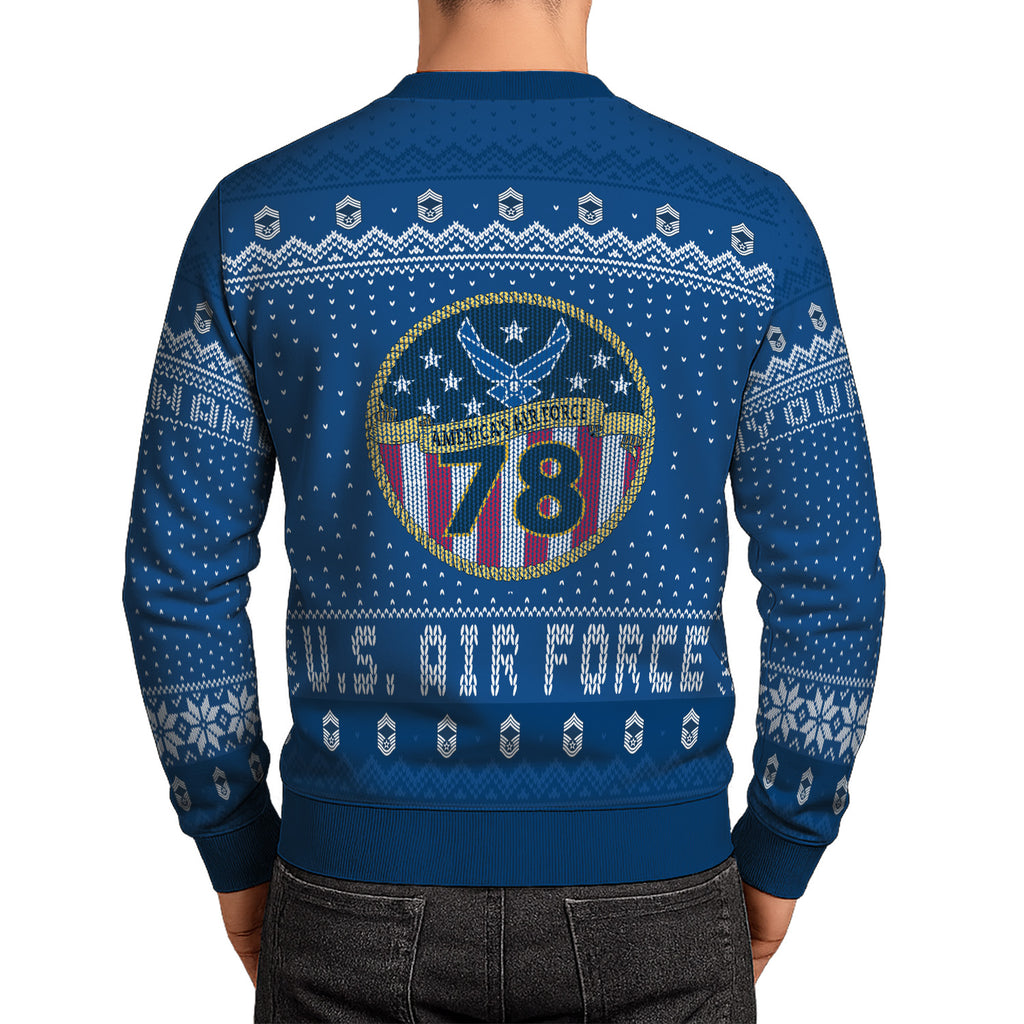 Custom Ranks & Text US Air Force Ugly Christmas Sweater for Women Men TUST04