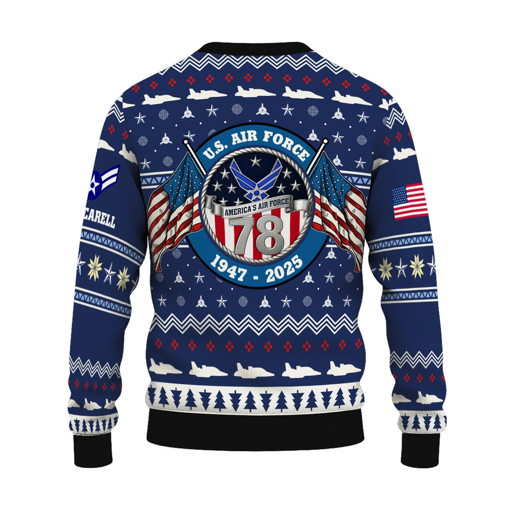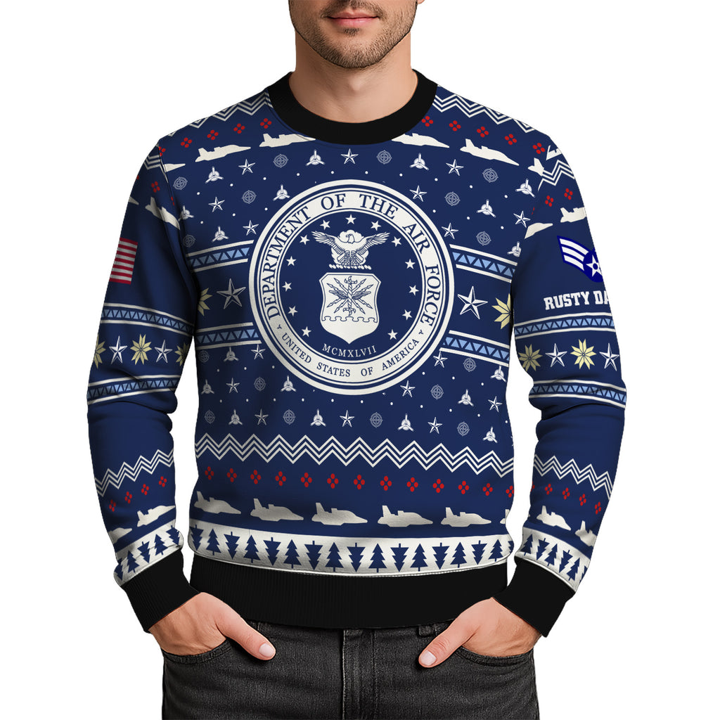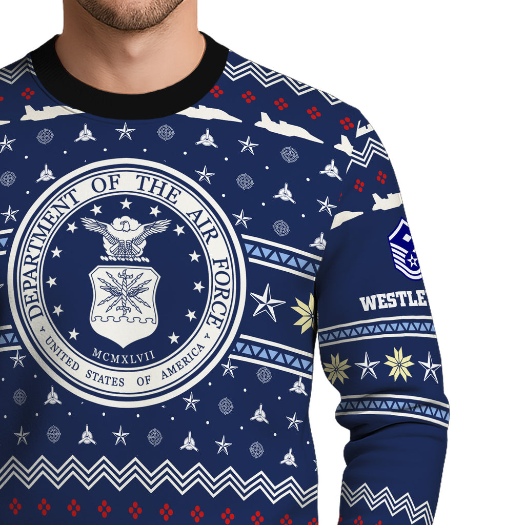 Custom Ranks And Text US Air Force Ugly Christmas Sweater for Women Men KRUST01