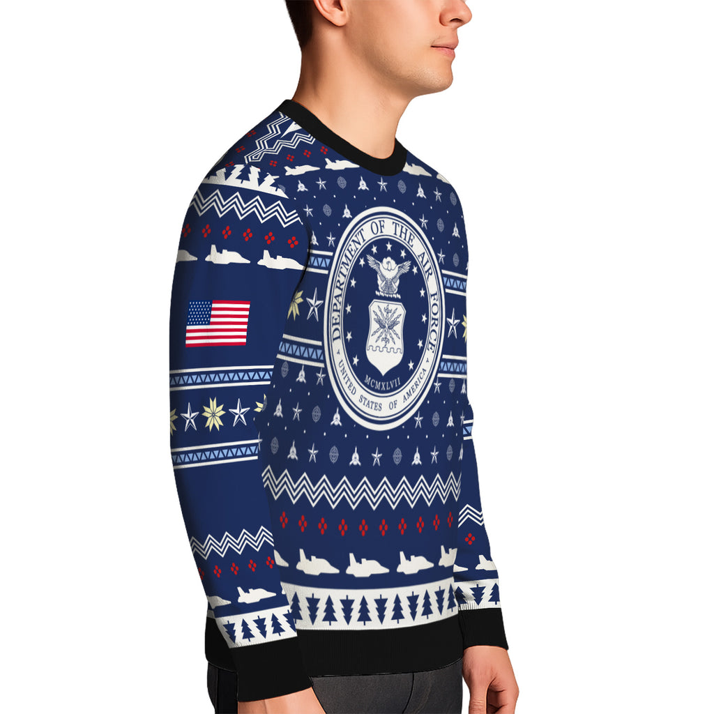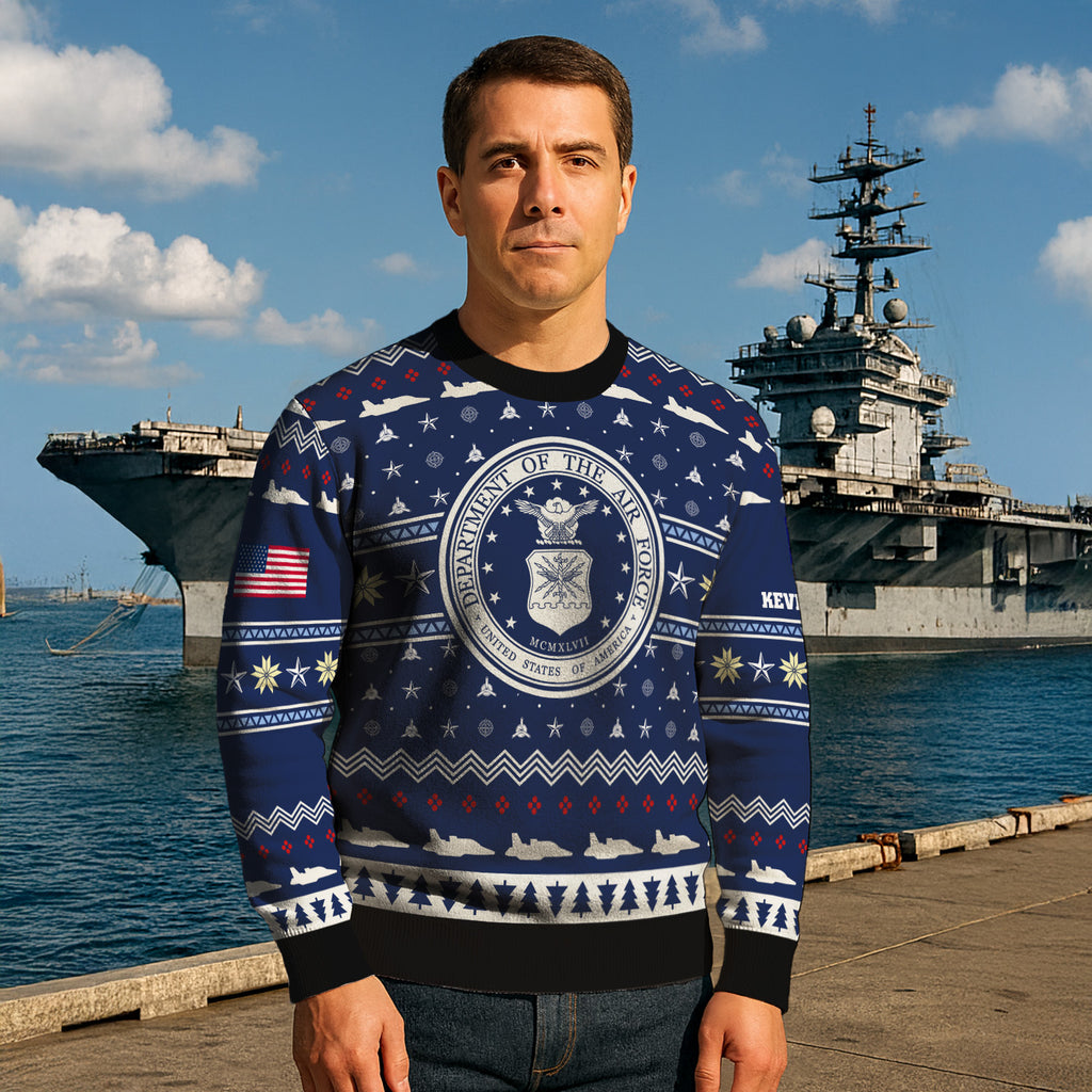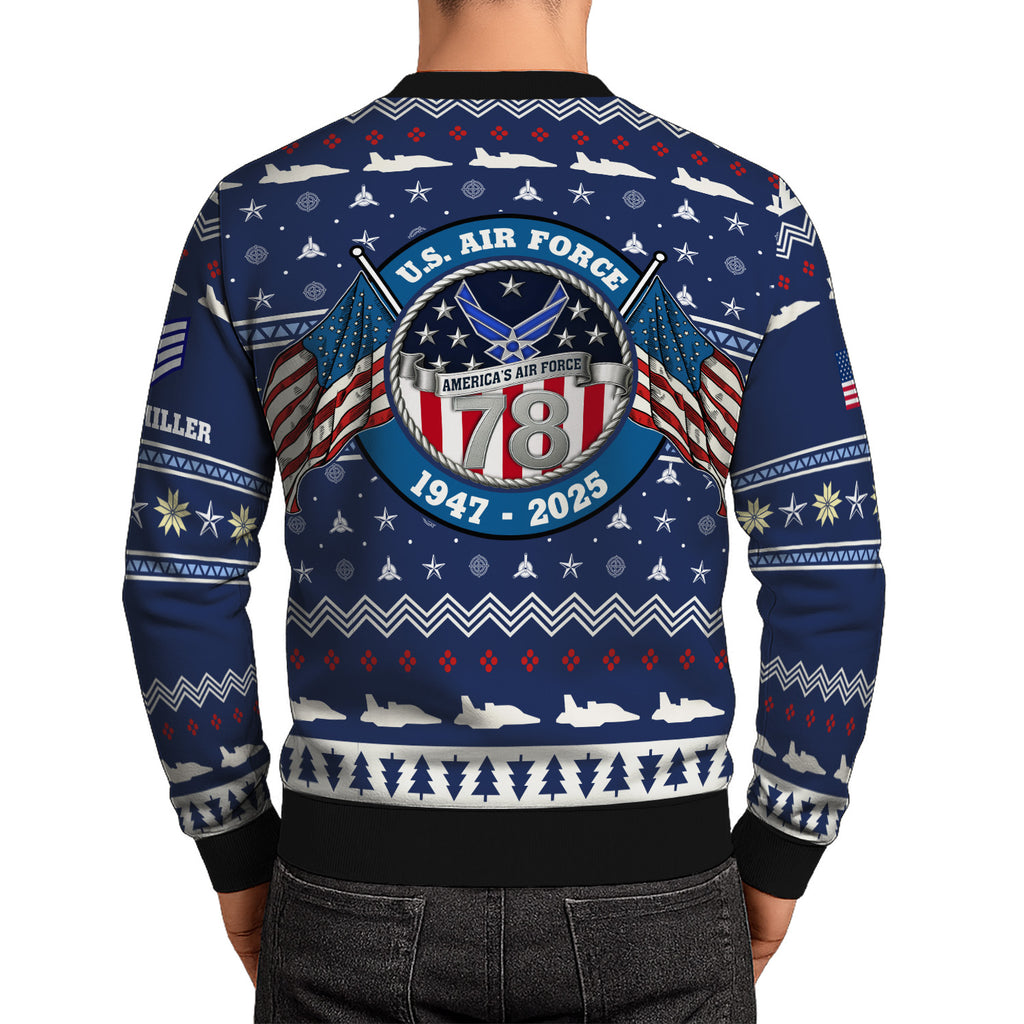 Custom Ranks And Text US Air Force Ugly Christmas Sweater for Women Men KRUST01