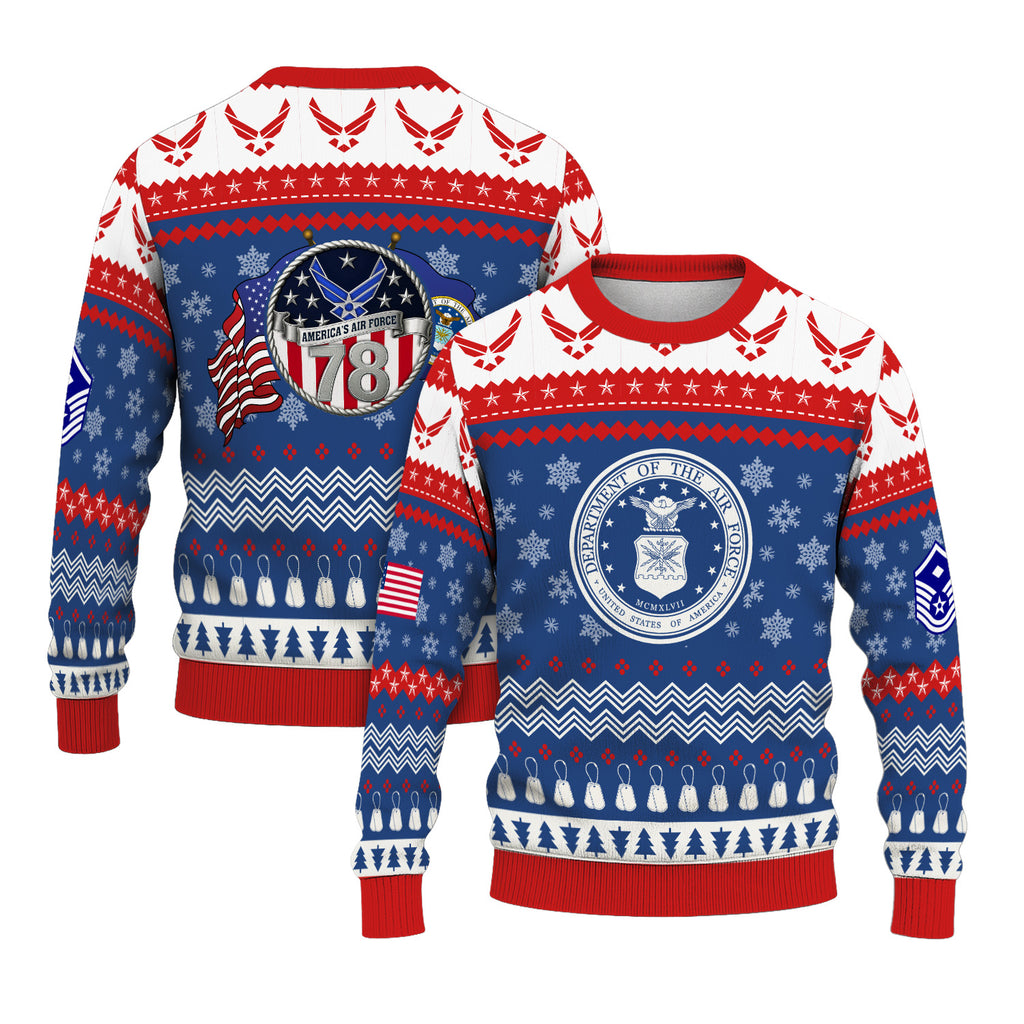 Custom Ranks US Air Force Ugly Christmas Sweater for Women Men KRUST04