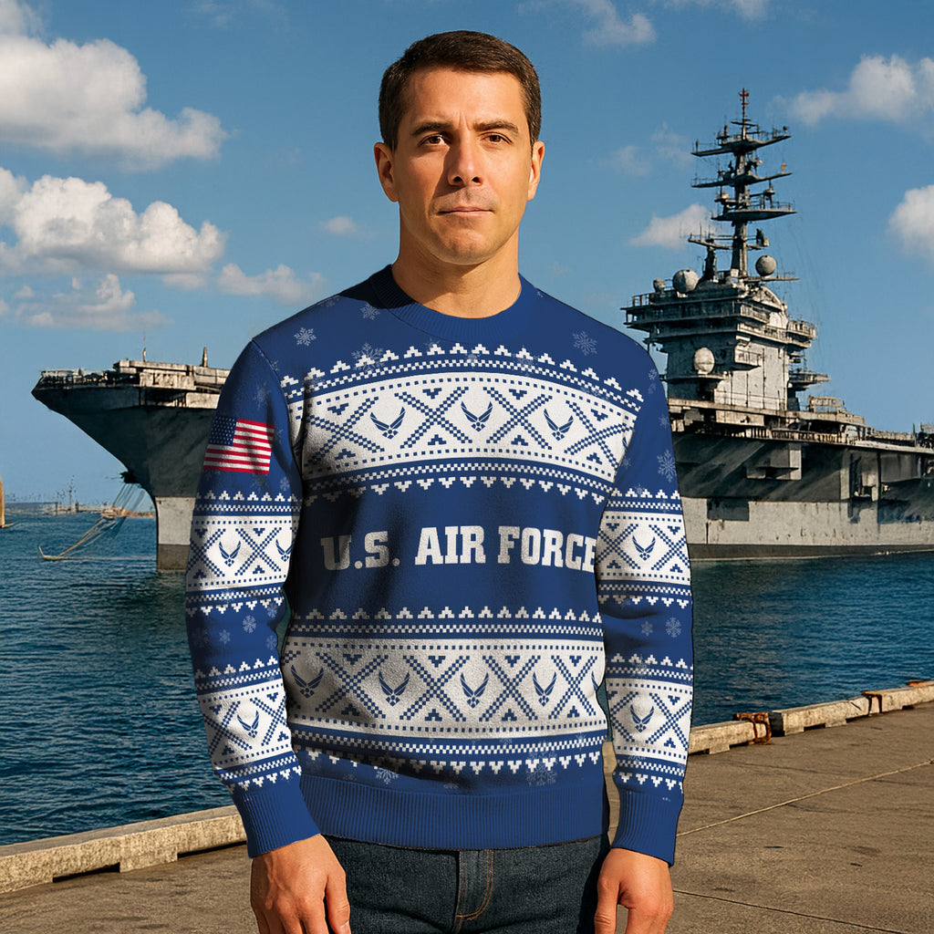 Custom Ranks US Air Force Ugly Christmas Sweater for Women Men KRUST05