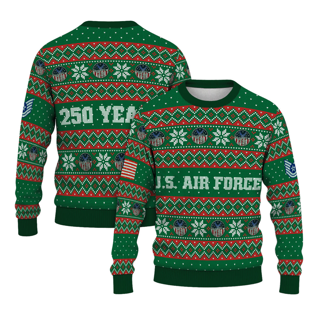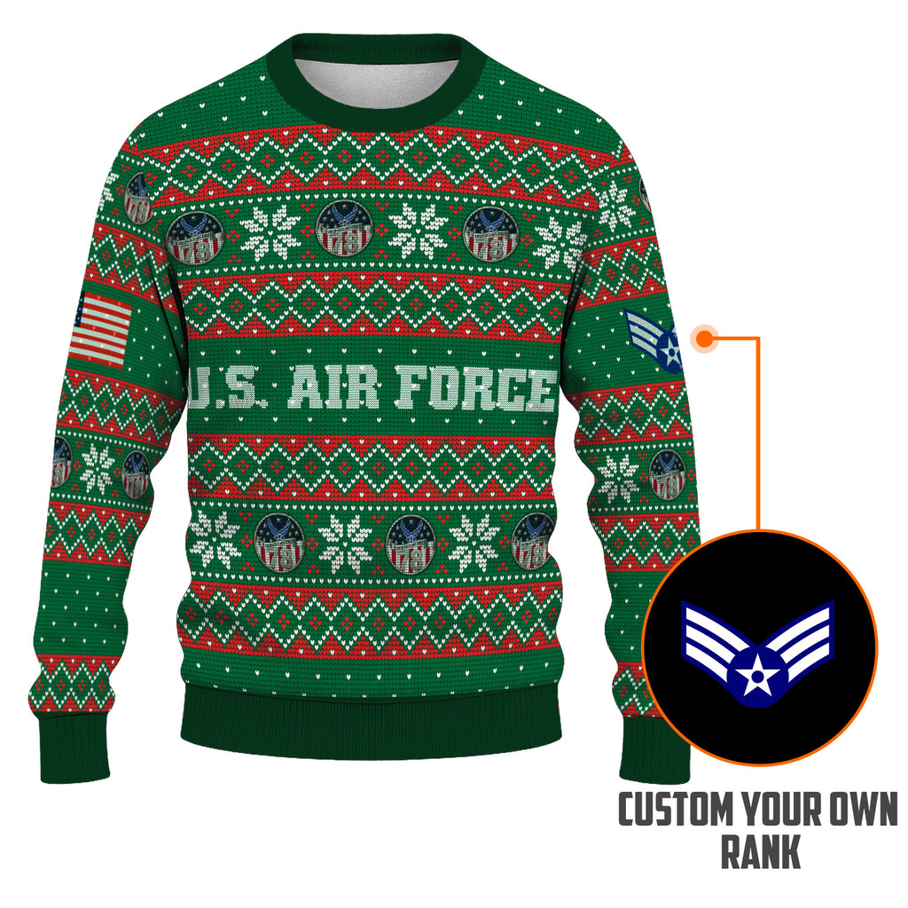 Custom Ranks US Air Force Ugly Christmas Sweater for Women Men KRUST09