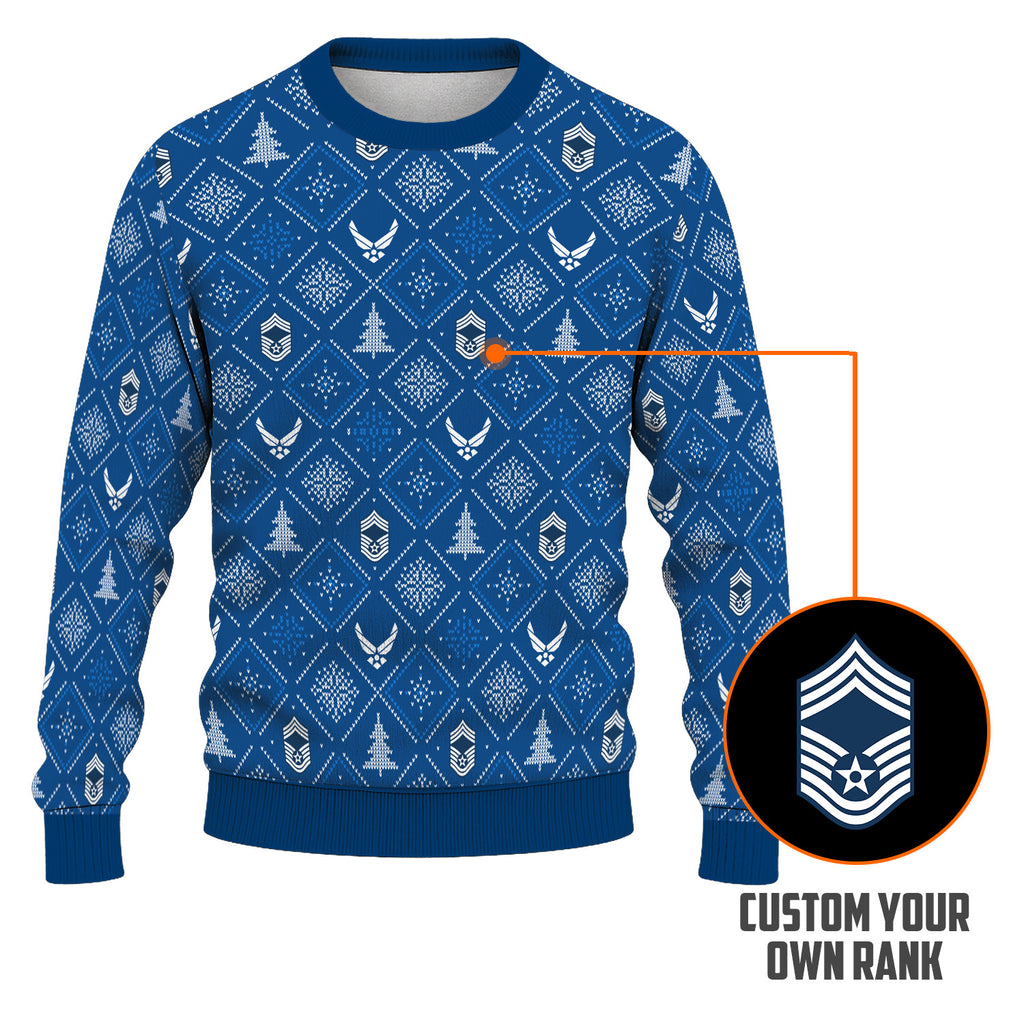 Custom Ranks US Air Force Ugly Christmas Sweater for Women Men TUST03