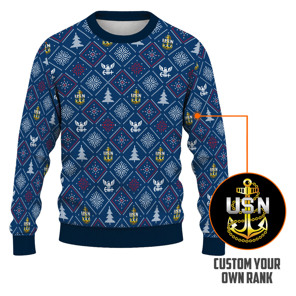 Custom Ranks US Navy Ugly Christmas Sweater for Women Men TUST03