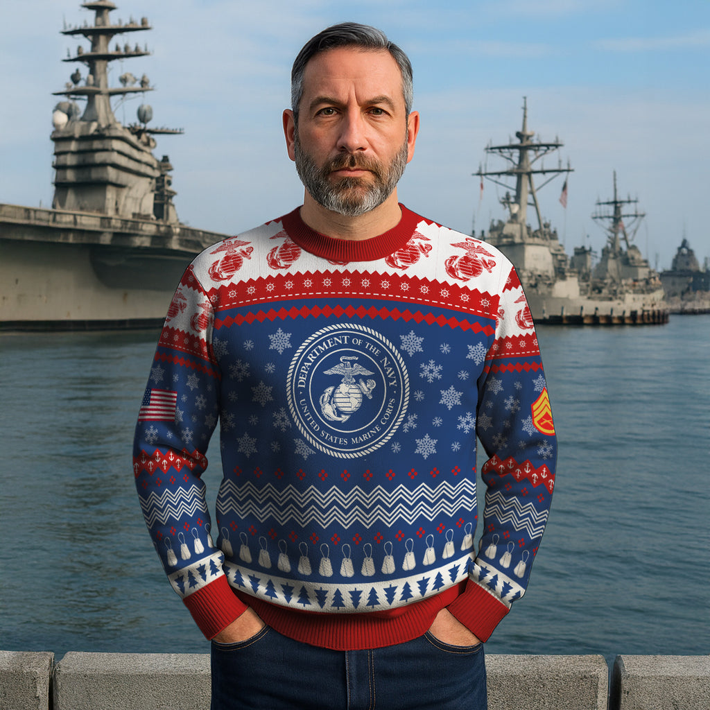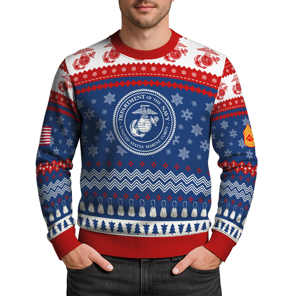 Custom Ranks USMC Ugly Christmas Sweater for Women Men KRUST04