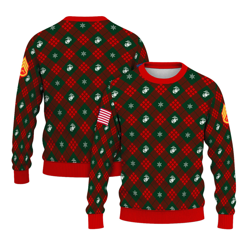 Custom Ranks USMC Ugly Christmas Sweater for Women Men KRUST08