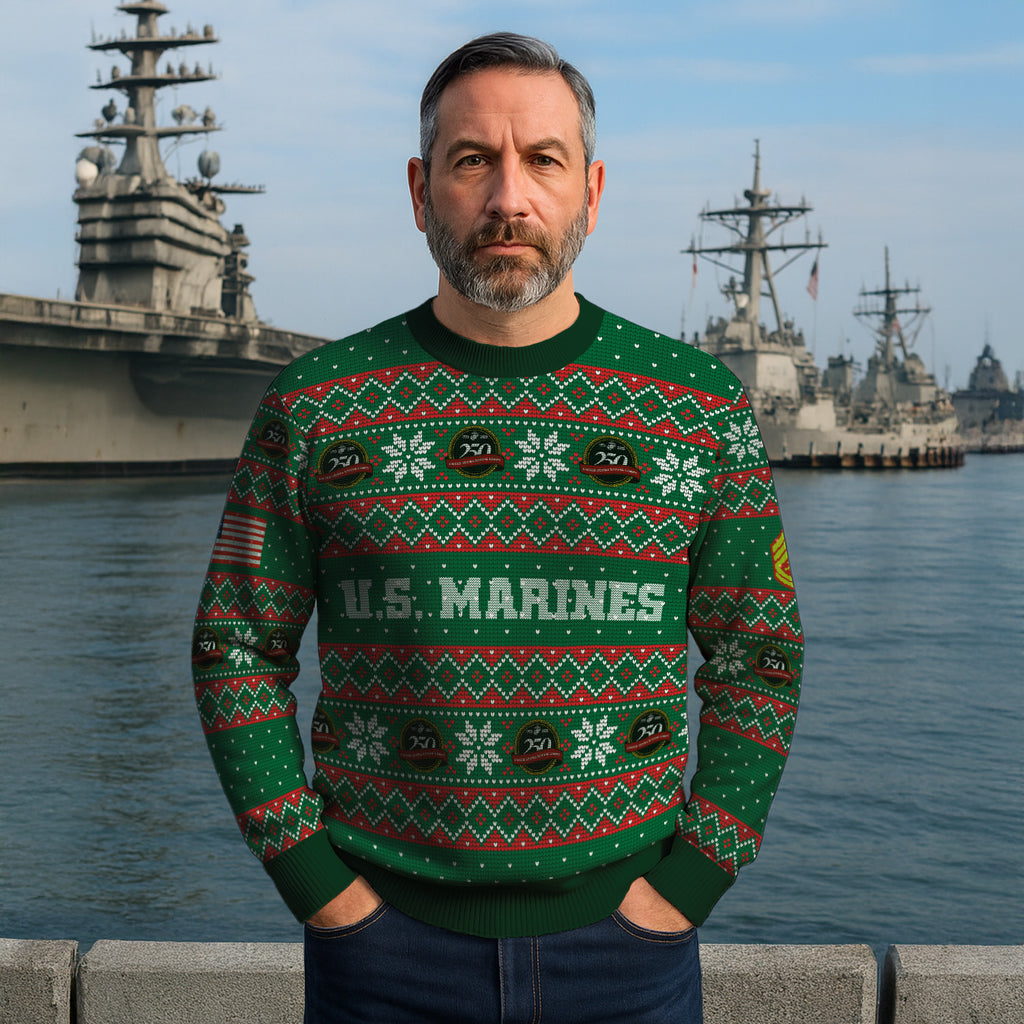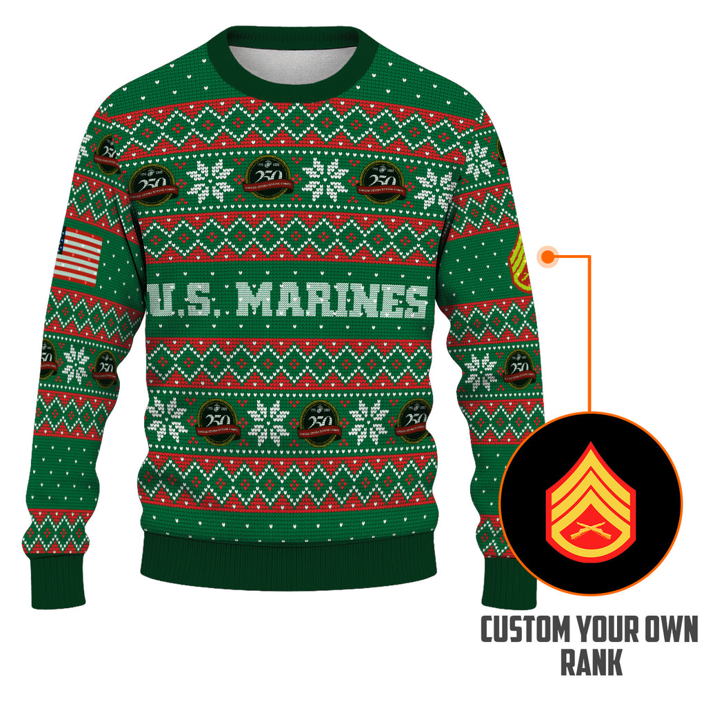 Custom Ranks USMC Ugly Christmas Sweater for Women Men KRUST09