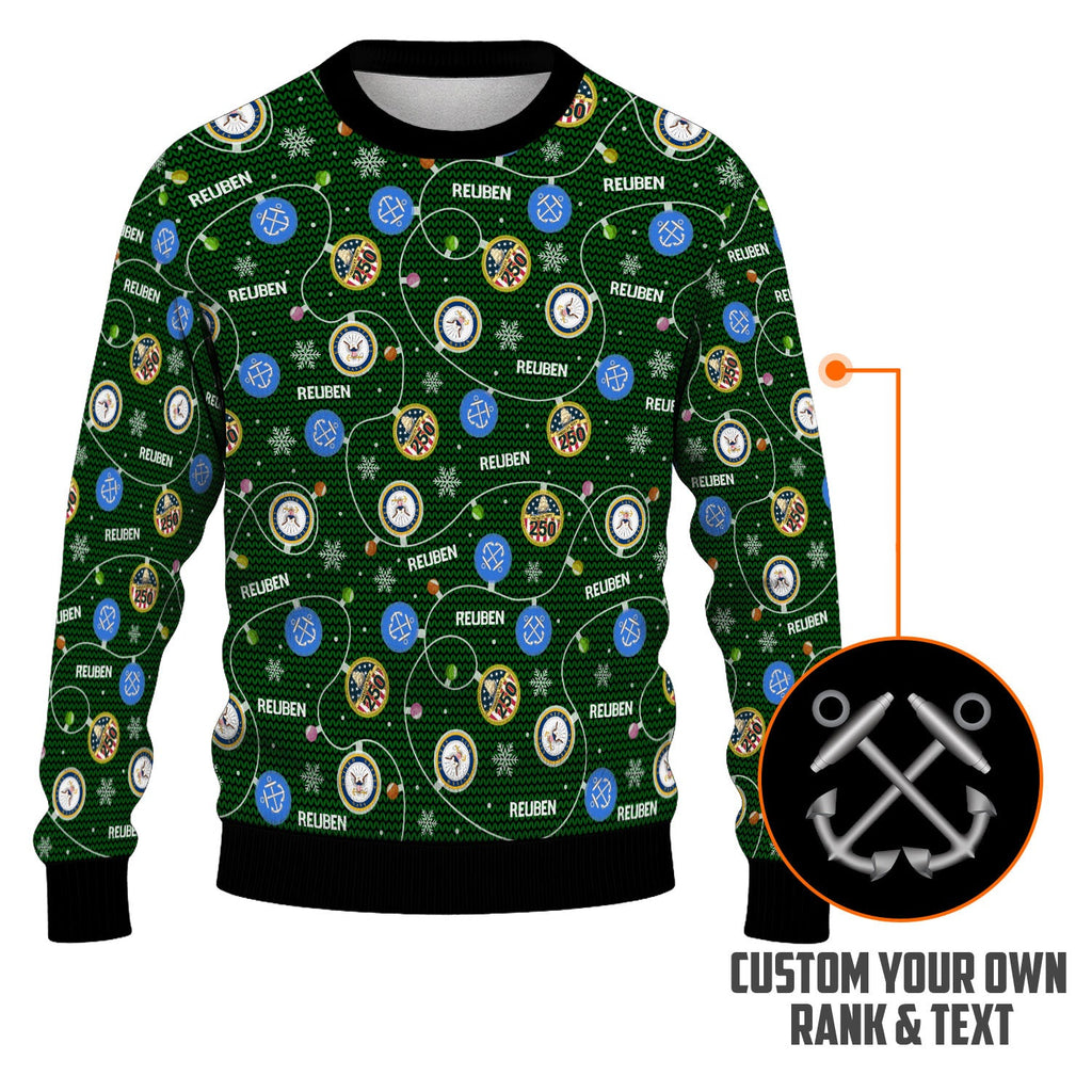 Personalized US Navy Christmas Ugly Sweater KAUST10