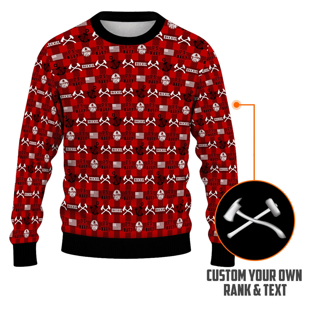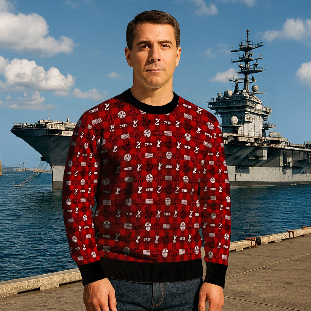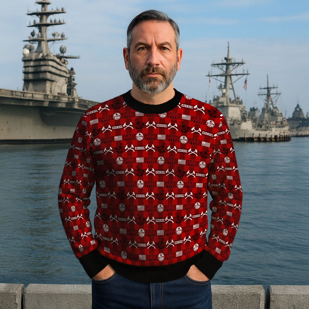 Personalized US Navy Christmas Ugly Sweater KAUST12