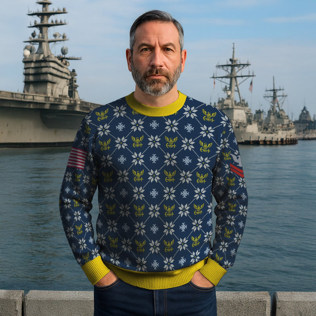 Personalized US Navy Christmas Ugly Sweater KRUST10