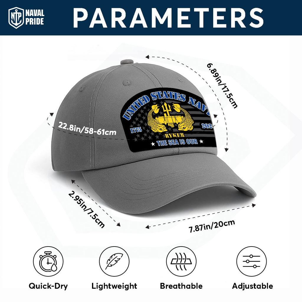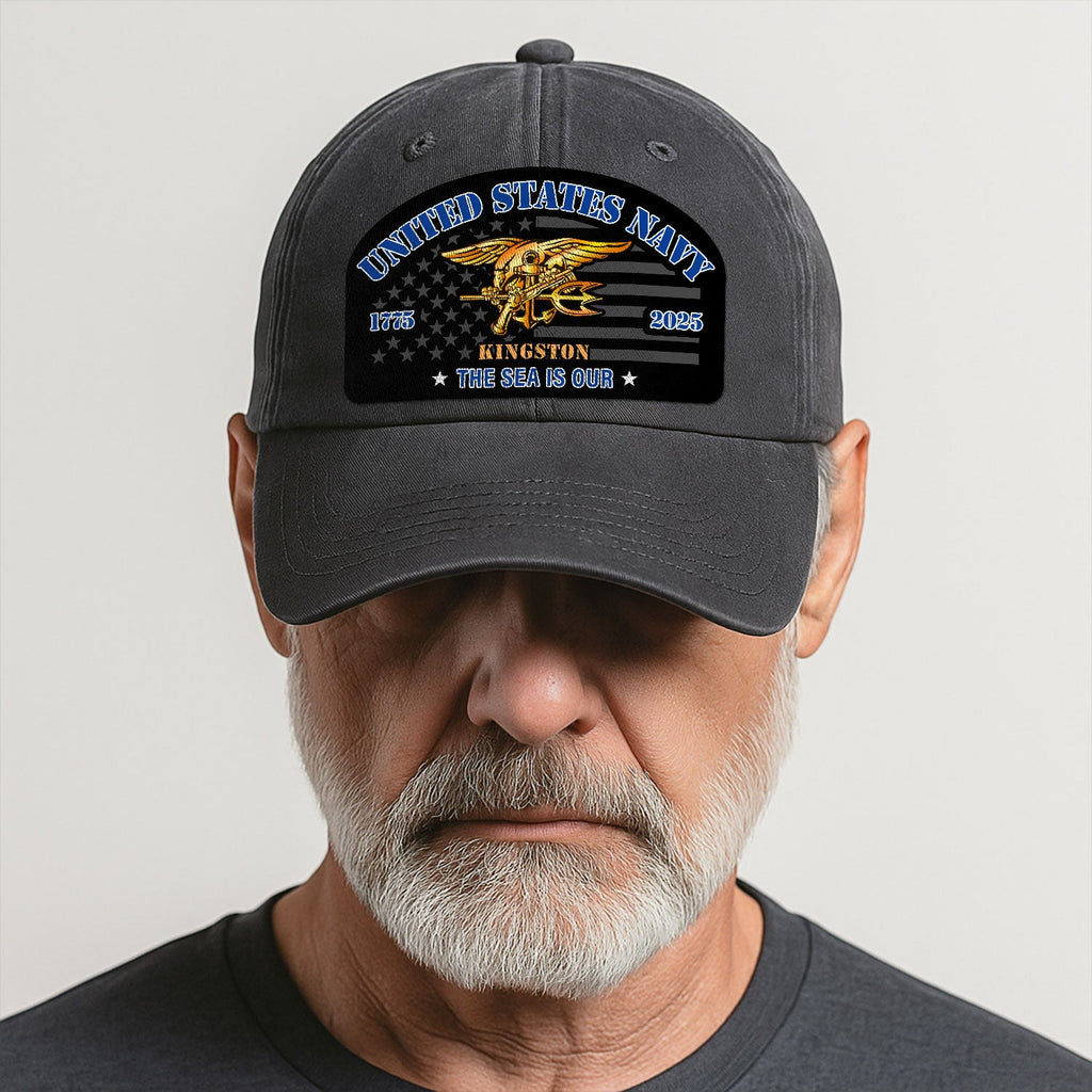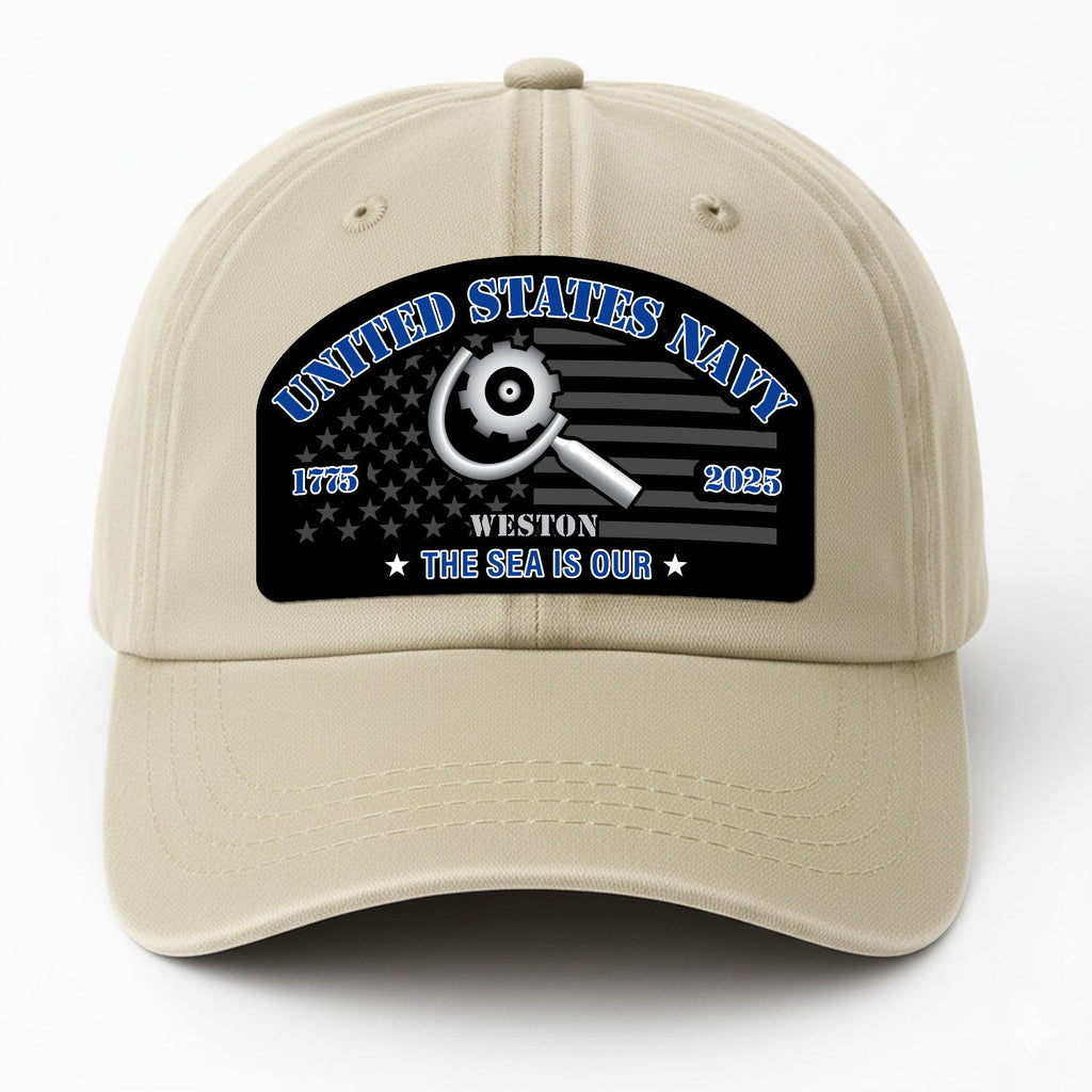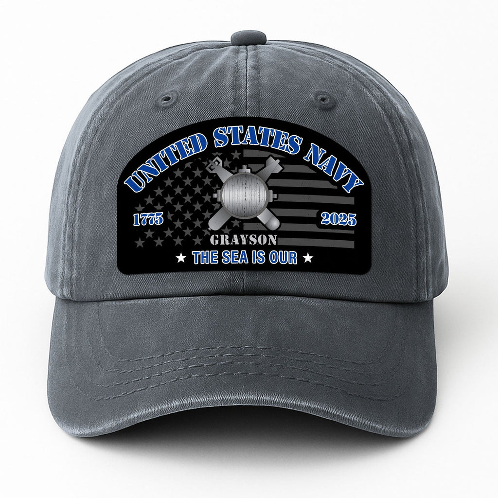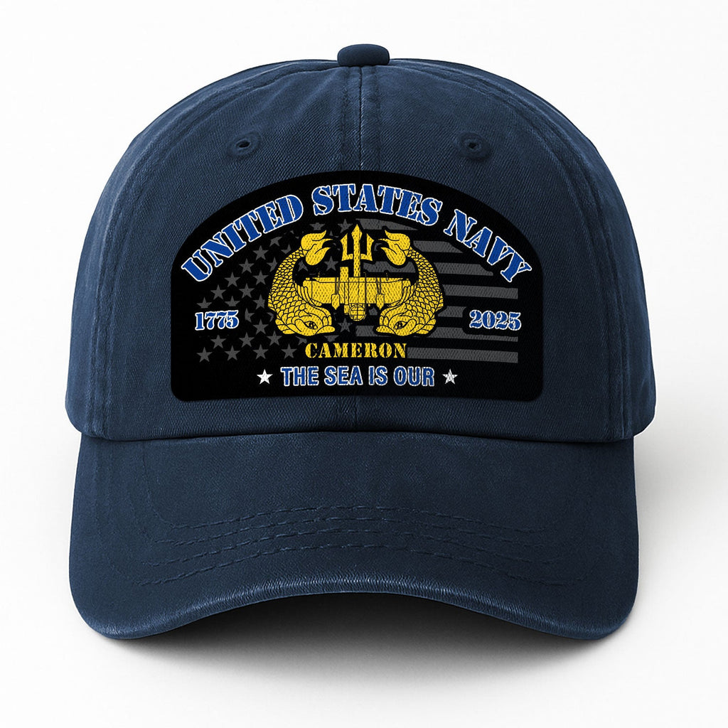 Custom Ranks & Text US Navy Premium Washed Denim Cap DC002