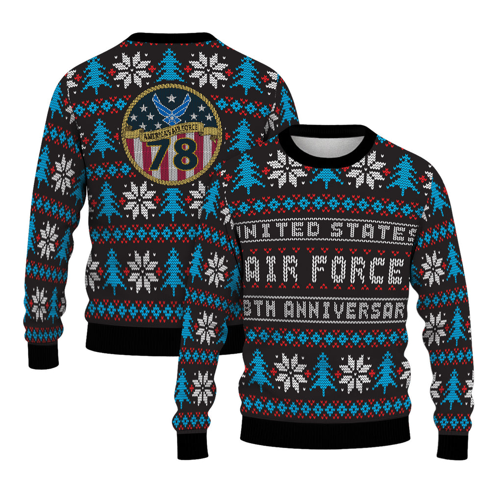 US Air Force 78th Anniversary Ugly Christmas Sweater for Women Men